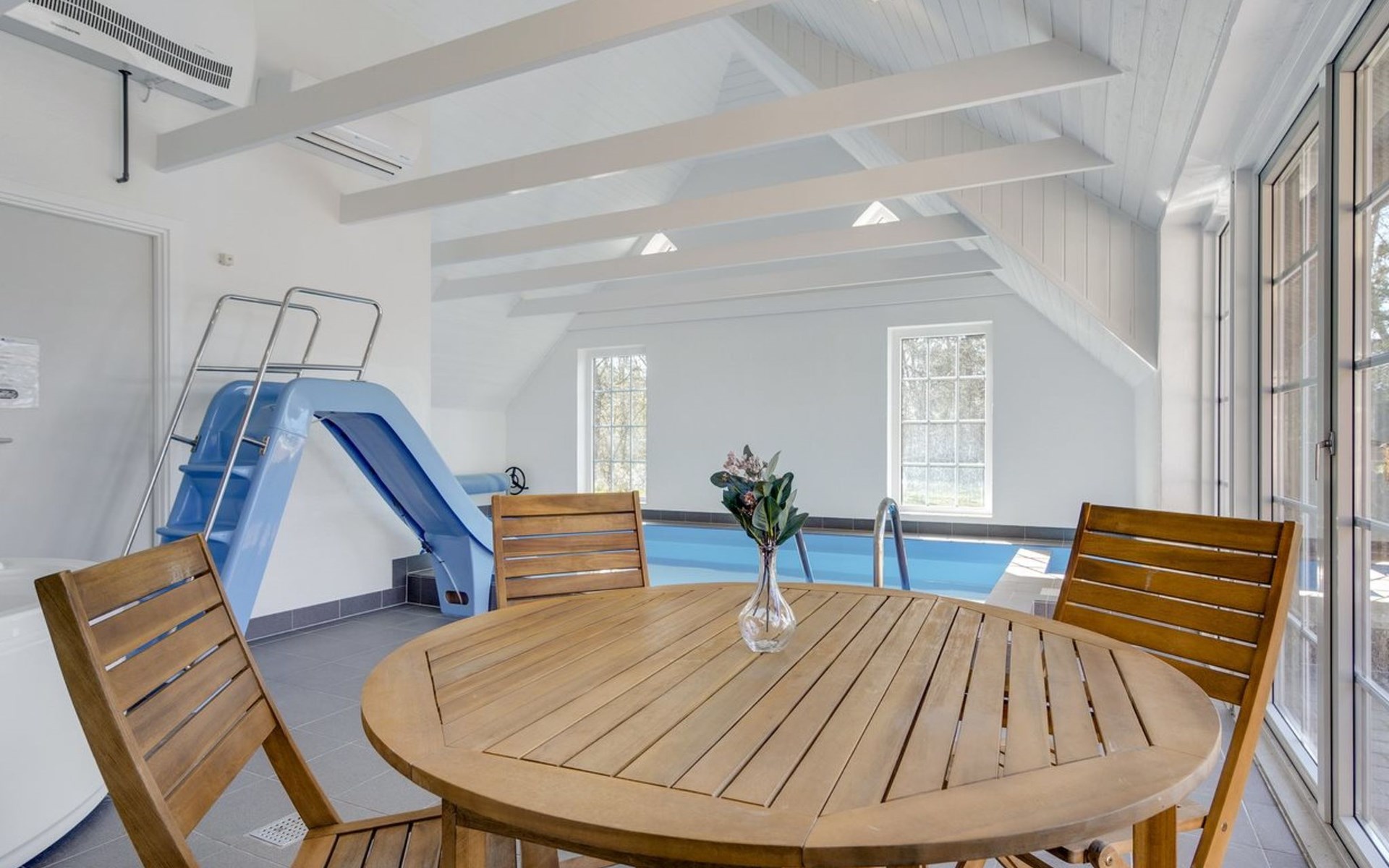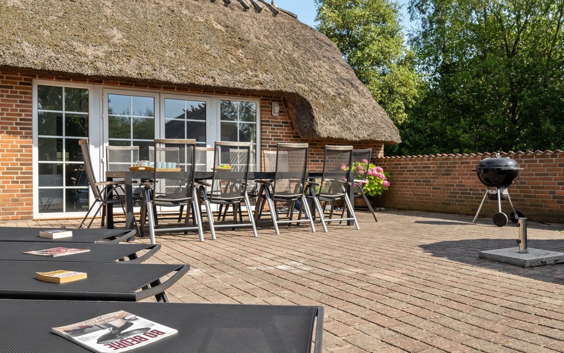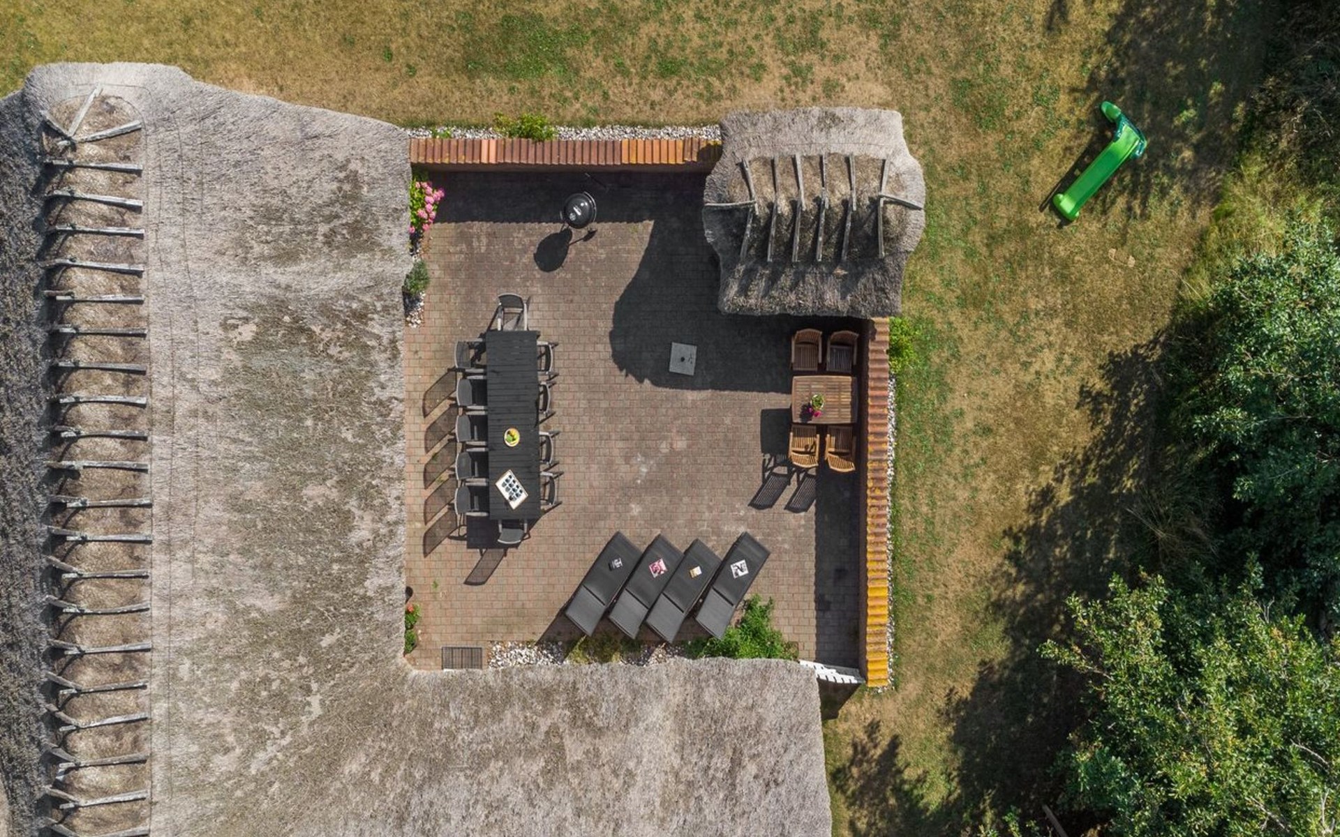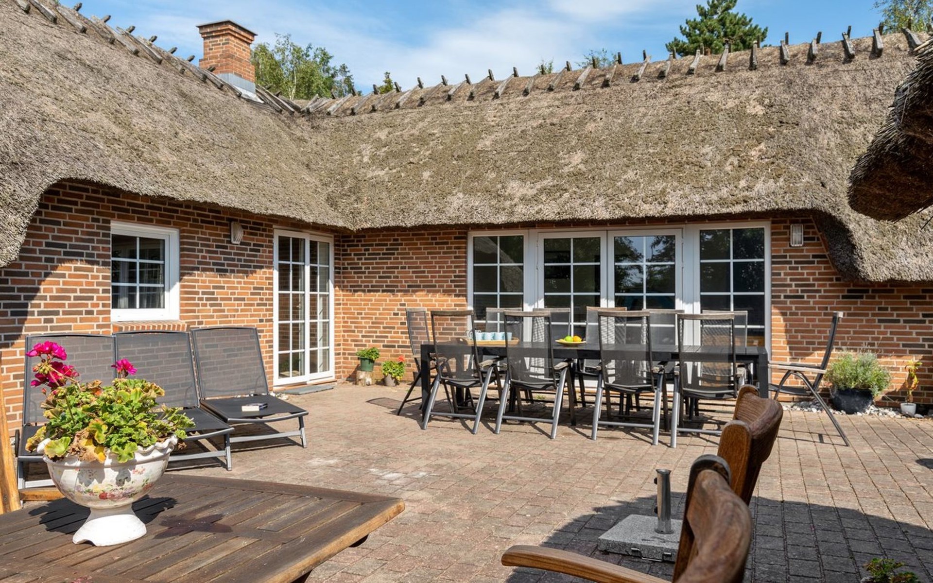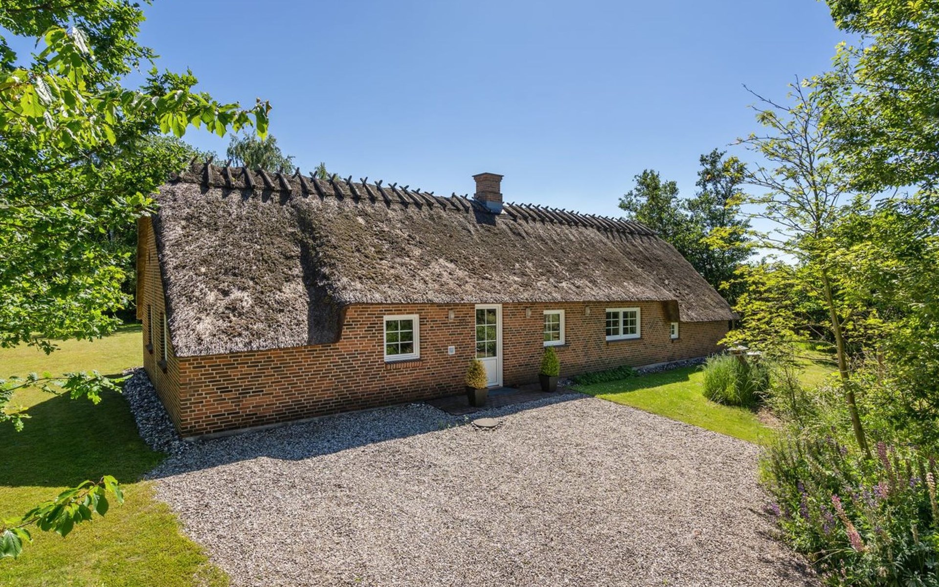 Einfamilienhaus, Baujahr 1995. 1.3 km vom Meer. Zur Alleinbenutzung: naturbelassenes Grundstück 2'247 m2, Hallenbad (3 x 5 m, 1'7.7 m2, 130 - 130 cm tief). Terrasse (65 m2), Kinderspielplatz (Schaukel). Im Hause: Sauna, Trampolin, Waschmaschine, Wäschetrockner. Parkplatz beim Haus. E-Ladestation. Lebensmittelgeschäft 1 km. Golfplatz 4.8 km. Der Besitzer akzeptiert keine Jugendgruppen.