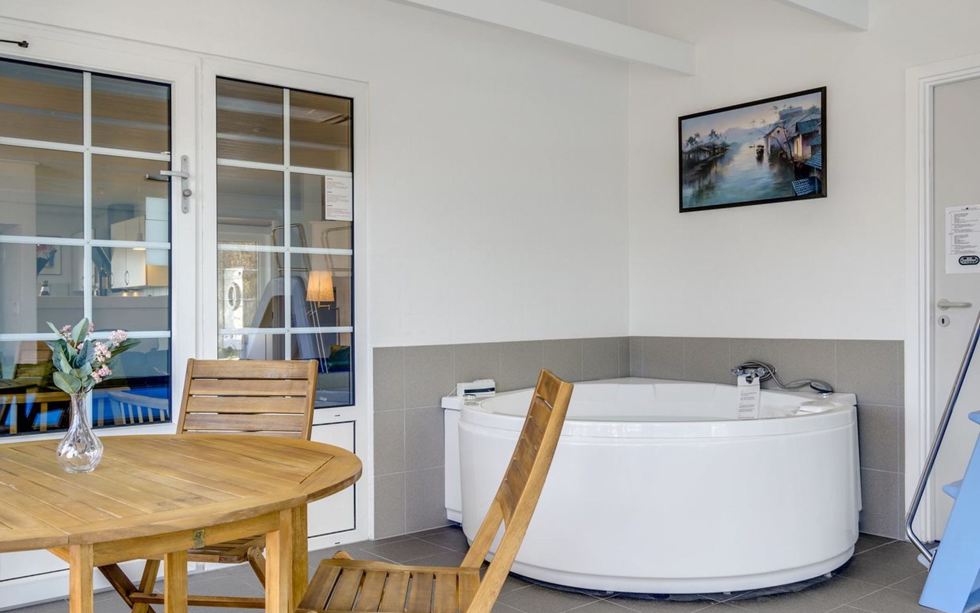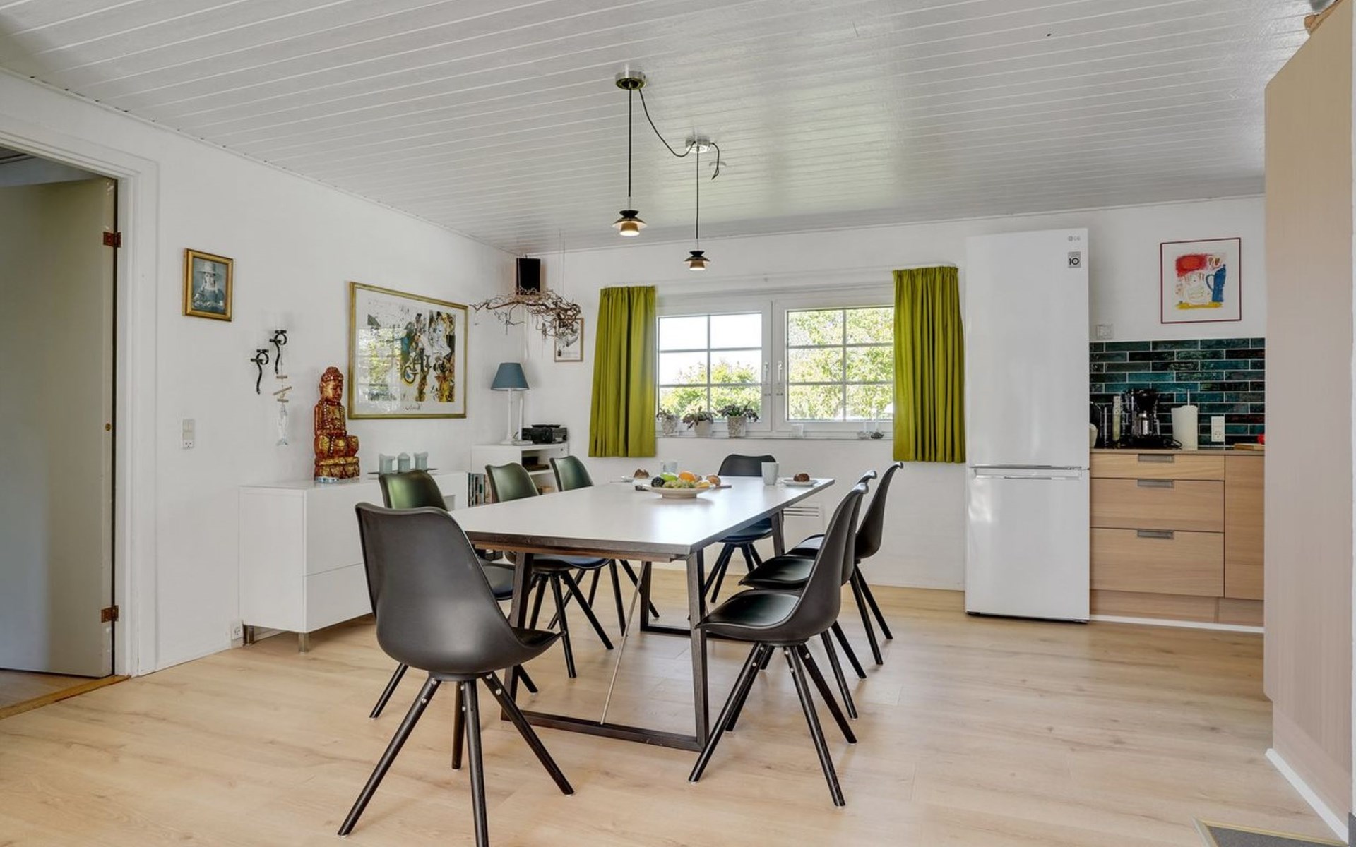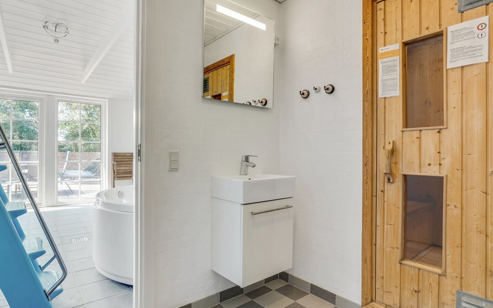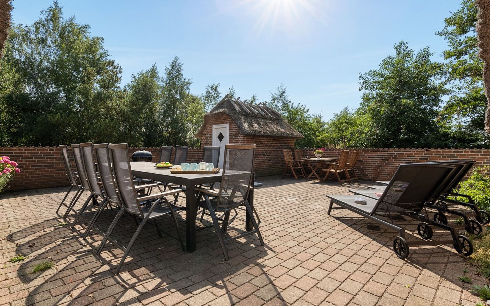 Einfamilienhaus, Baujahr 1995. 1.3 km vom Meer. Zur Alleinbenutzung: naturbelassenes Grundstück 2'247 m2, Hallenbad (3 x 5 m, 1'7.7 m2, 130 - 130 cm tief). Terrasse (65 m2), Kinderspielplatz (Schaukel). Im Hause: Sauna, Trampolin, Waschmaschine, Wäschetrockner. Parkplatz beim Haus. E-Ladestation. Lebensmittelgeschäft 1 km. Golfplatz 4.8 km. Der Besitzer akzeptiert keine Jugendgruppen.
