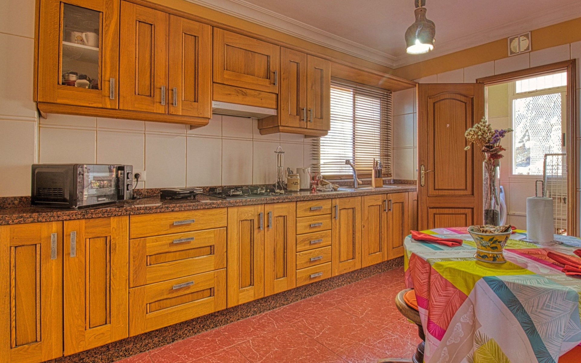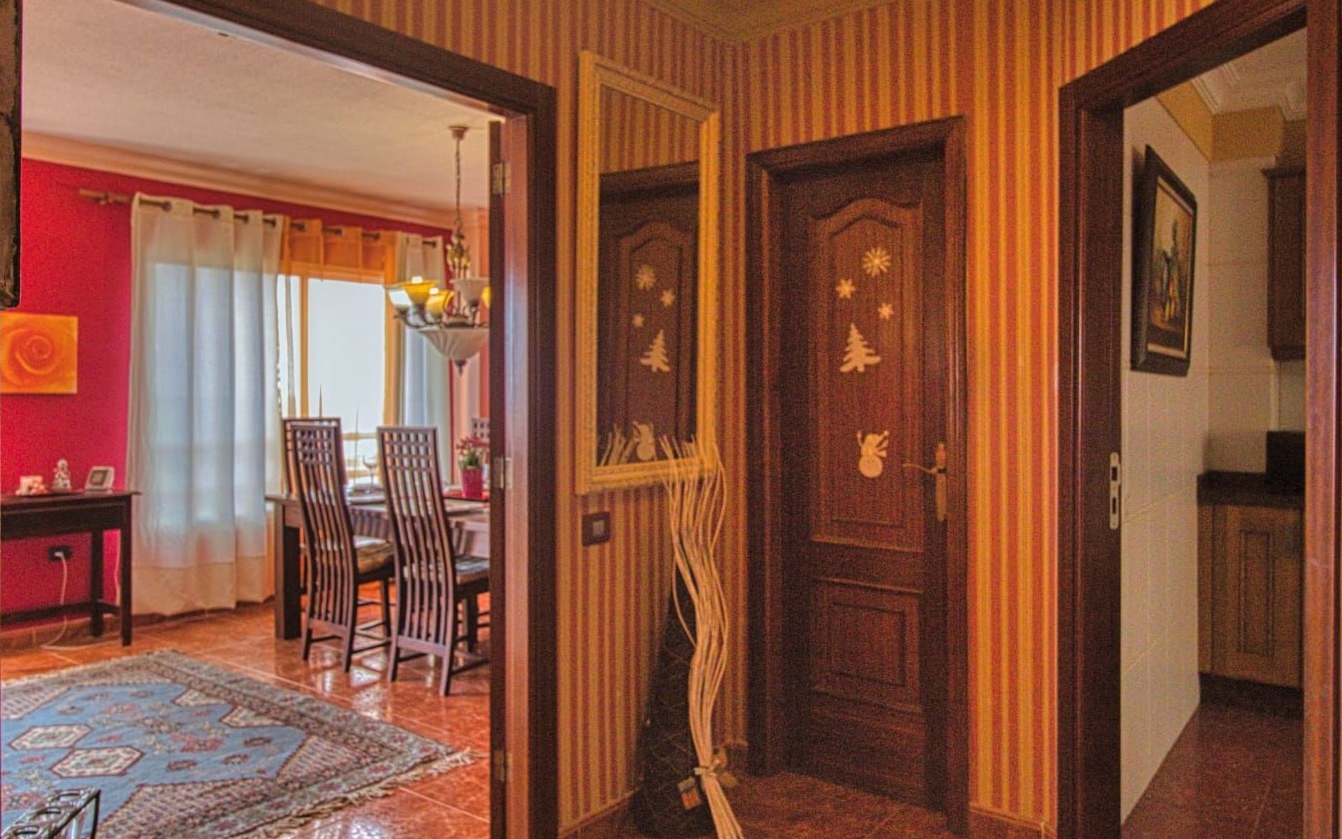 Das Innere der Wohnung ist sorgfältig ausgestattet, um einen komfortablen und entspannten Aufenthalt zu gewährleisten. Mit drei Schlafzimmern und zwei Bädern ist die Wohnung ideal für Familien oder Gruppen. Die große Küche ist komplett ausgestattet mit Mikrowelle, 4-Platten-Herd, Backofen, Kühlschrank mit Gefrierfach, Wasserkocher und Saftpresse, so dass Sie Mahlzeiten wie zu Hause zubereiten können. Für Ihren Komfort verfügt die Wohnung über eine Klimaanlage, einen Deckenventilator in einem der Schlafzimmer, kostenloses WLAN und ein Wohnzimmer mit einer Essecke für 5 oder 6 Personen, zwei Sesseln, einem großen Essbereich für bis zu 5 Personen und einem 40-Zoll-Plasma-TV mit WLAN-Anschluss.