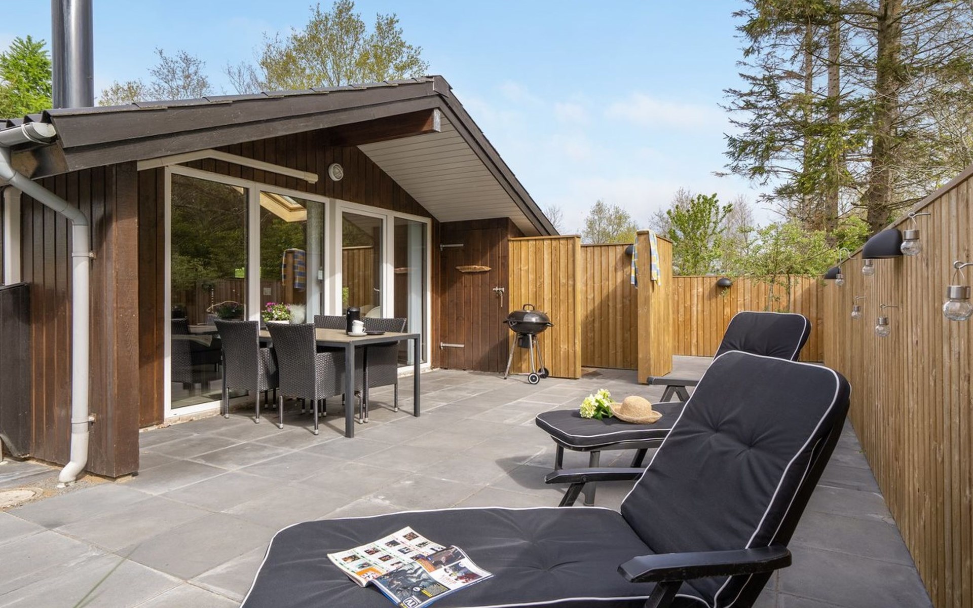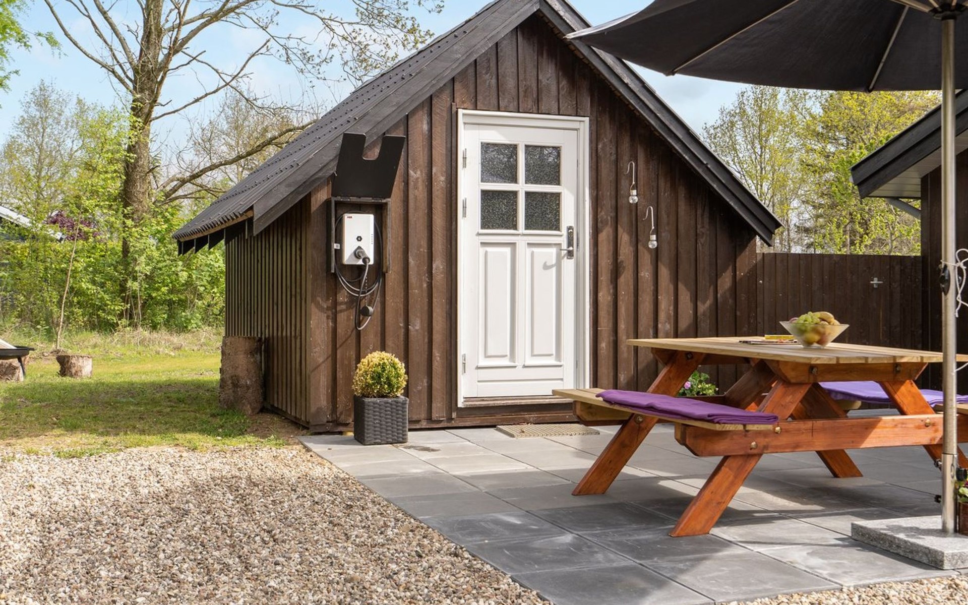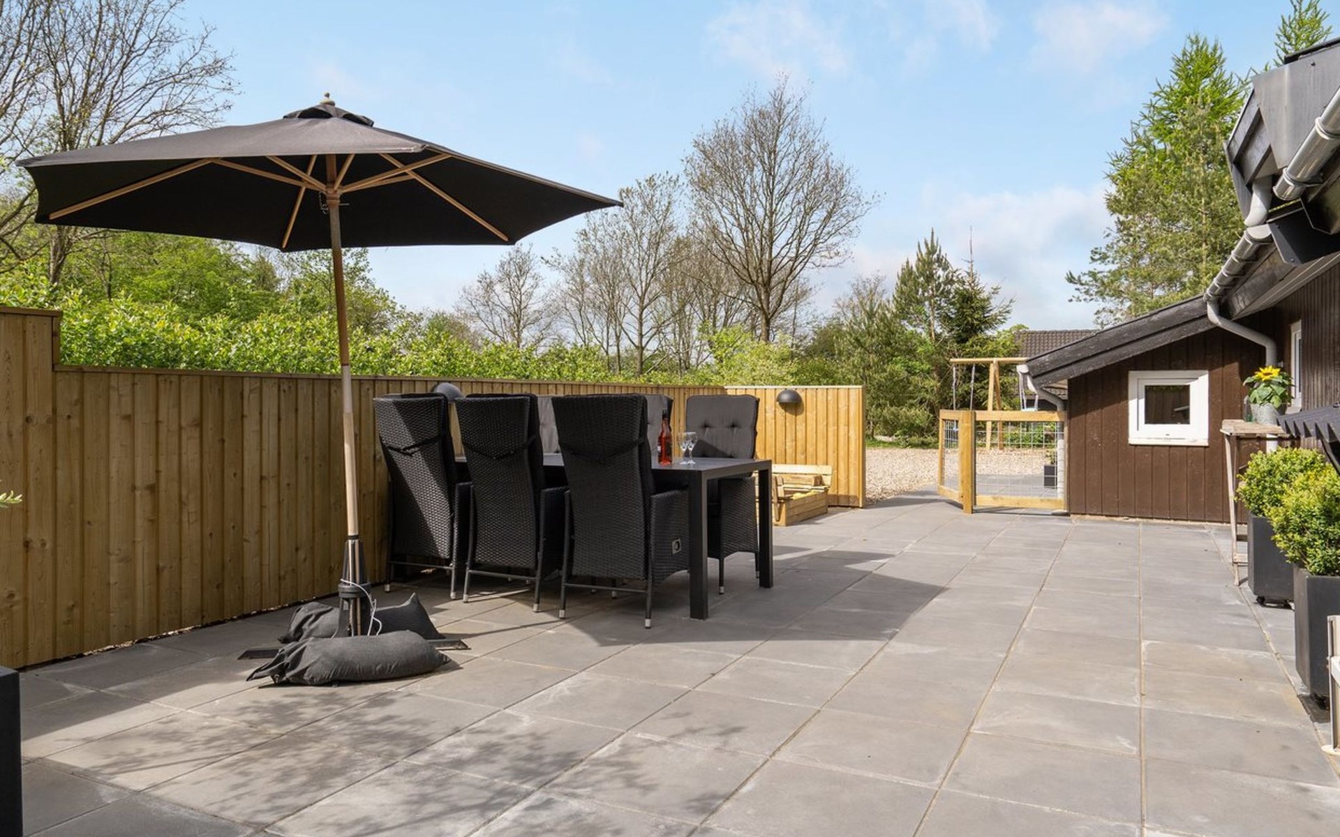 Einfamilienhaus, Baujahr 2004. 30 km vom Meer. Zur Alleinbenutzung: Grundstück 860 m2, gepflegter Garten. Aussendusche, Terrasse (140 m2), Grill, Kinderspielplatz (Schaukel). Im Hause: Waschmaschine. Parkplatz beim Haus. E-Ladestation. Lebensmittelgeschäft 1 km. Der Besitzer akzeptiert keine Jugendgruppen.