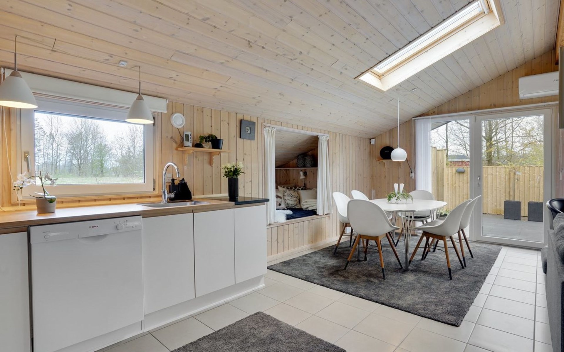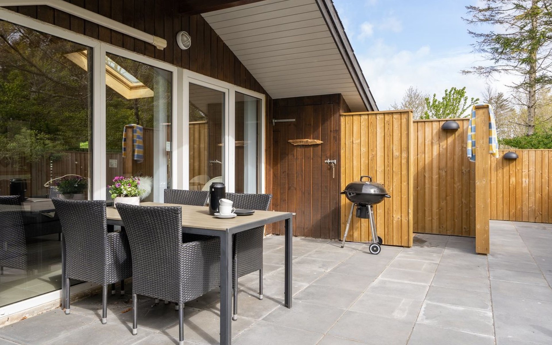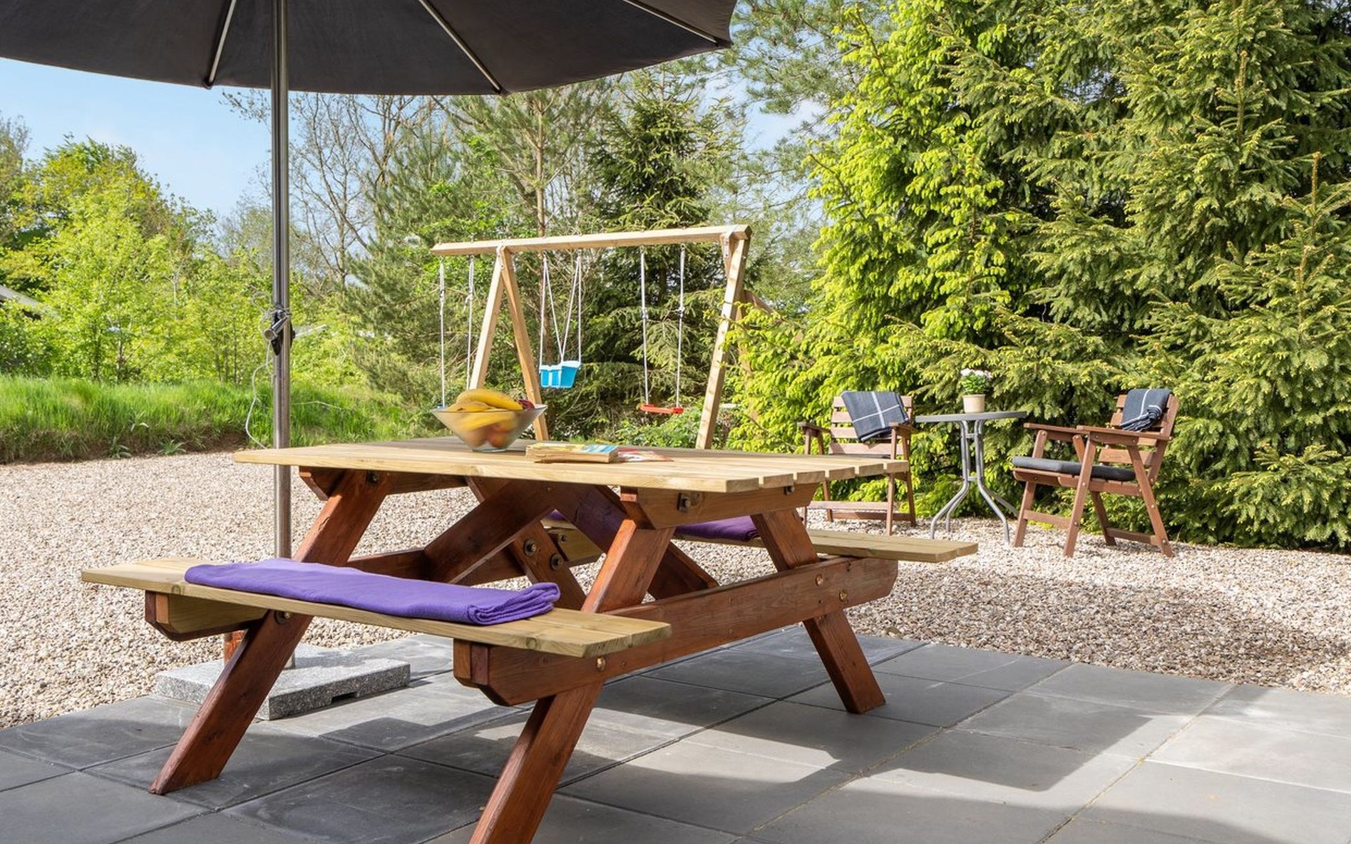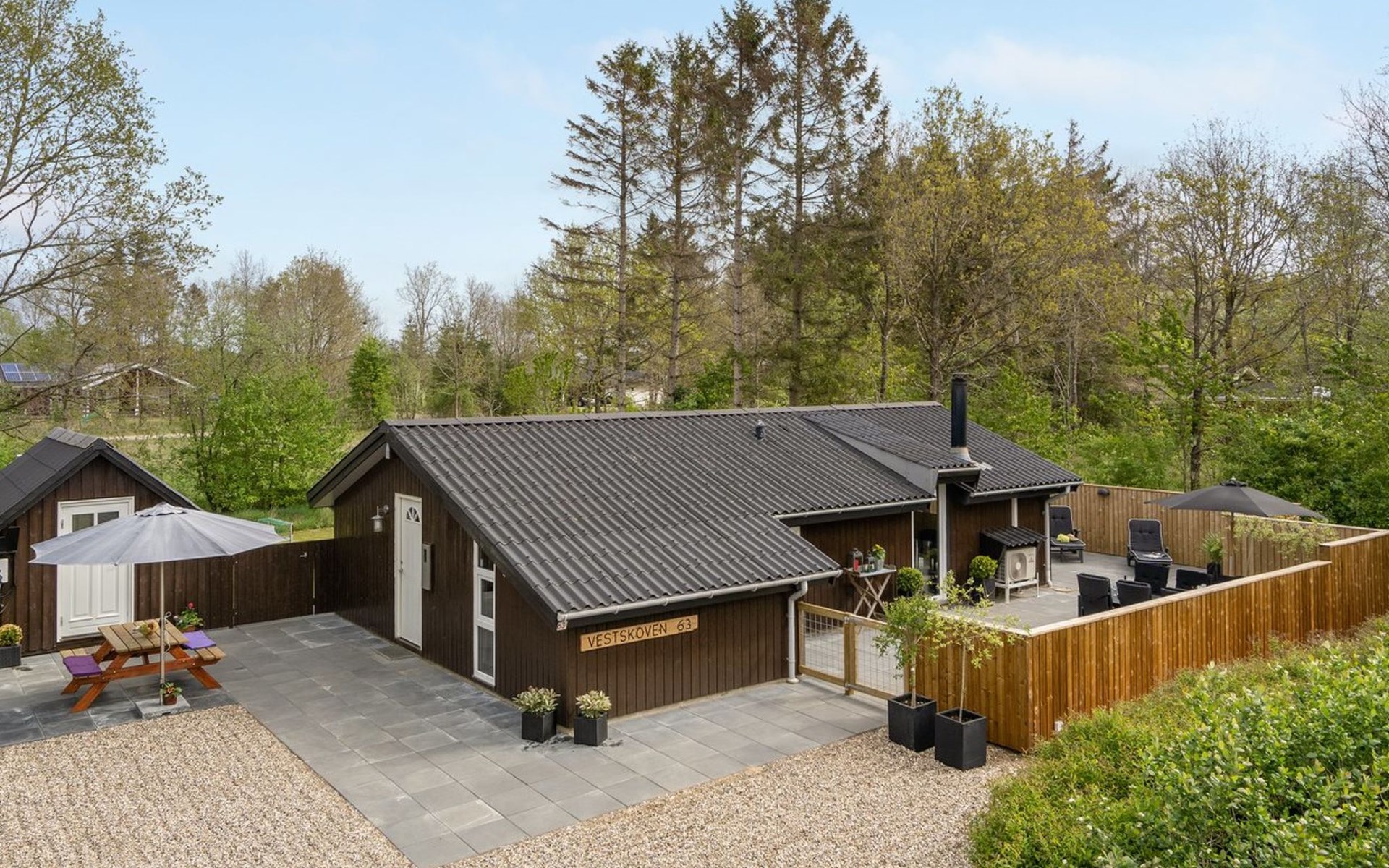 Einfamilienhaus, Baujahr 2004. 30 km vom Meer. Zur Alleinbenutzung: Grundstück 860 m2, gepflegter Garten. Aussendusche, Terrasse (140 m2), Grill, Kinderspielplatz (Schaukel). Im Hause: Waschmaschine. Parkplatz beim Haus. E-Ladestation. Lebensmittelgeschäft 1 km. Der Besitzer akzeptiert keine Jugendgruppen.