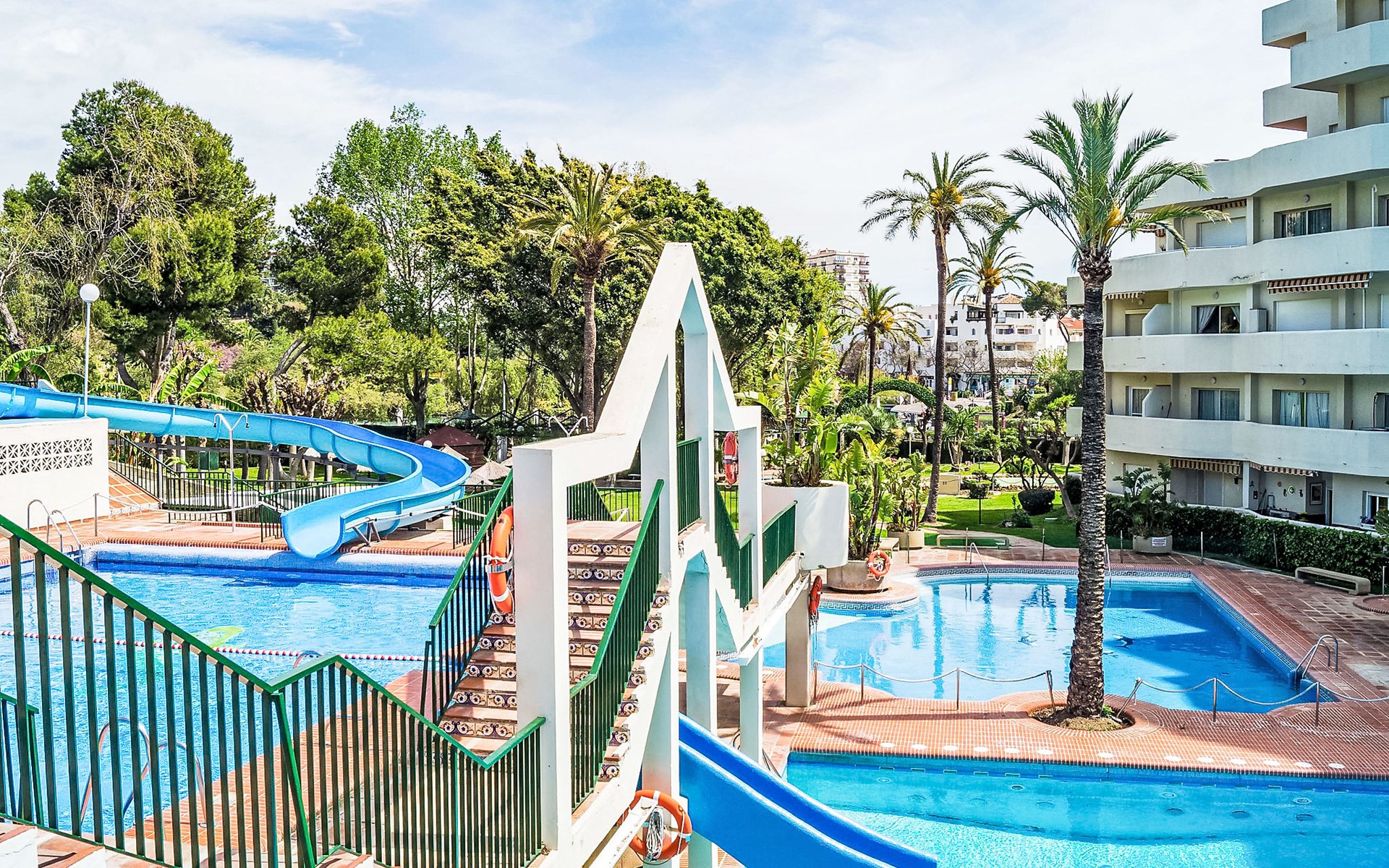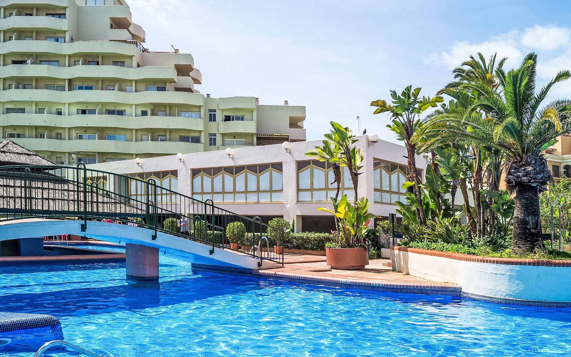 Benalmadena Costa: Gemütliches, komfortables Appartementhaus "Benalbeach", auf 10 Stockwerken. Im Ortszentrum von Benalmadena Costa, zentrale, sonnige Lage, 100 m vom Meer, 100 m vom Strand, Strasse zu überqueren. Zur Mitbenutzung: Garten mit Rasen 5'000 m2, Teich, 4 Schwimmbäder eckig (saisonale Verfügbarkeit: 01.Mar. - 30.Okt.). Dusche/WC im Poolbereich, Kinderbecken, Rutschbahn, Tischtennis. Im Hause: Empfang, Restaurant, Wireless LAN (extra). Fitnessraum (extra). Billard, Spielzimmer, Tischfussball, Einkaufsmöglichkeit, Fahrstuhl. Einkaufsgeschäft, Restaurant, Café 20 m, Bushaltestelle 100 m, Bahnstation 1.5 km, Sandstrand 100 m, Hallenbad 1 km. Sporthafen 2 km, Reitstall 2 km, Luftseilbahn 2 km, Eisfeld 1 km. Nahe gelegene Sehenswürdigkeiten: Tivoli Wold 2 km, Mariposario 3 km, Castillo Bil Bil 100m. Bewachte Residenz. Die Nachbarschaft ist sehr lärmempfindlich. Ruhe und gutes Benehmen wird erwartet.