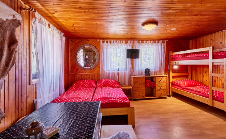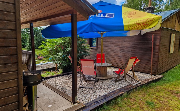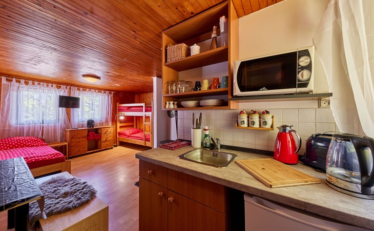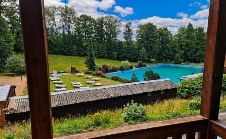 Freistehender, komfortabler Bungalow. 7 Häuser im Ferienresort. Ausserhalb des Ortes, ruhige, sonnige Lage, 50 m vom Waldrand, 2 km vom Skigebiet. Zur Mitbenutzung: naturbelassenes Grundstück, Liegewiese, Schwimmbad (saisonale Verfügbarkeit: 26.Jun. - 03.Sep.). Dusche/WC im Poolbereich, Tischtennis, Boccia, Badminton, Beachvolleyball, Grill, Feuerstelle. Zur Alleinbenutzung: Sitzplatz. In der Anlage: Wireless LAN, Billard, Einstellraum für Fahrräder, Sonnenterrasse, Skiraum. Parkplatz beim Haus. Lebensmittelgeschäft 1.5 km, Einkaufszentrum 6 km, Restaurant 5.5 km, Bushaltestelle "Mladé Buky" 1.5 km, Bahnstation "Mladé Buky" 1.5 km, Hallenbad 10 km. Golfplatz (18 Loch) 4 km, Reitstall 3.5 km, Wanderwege ab Haus 50 m, Radweg, Skiverleih 2.5 km, Skibushaltestelle 50 m, Skischule 2.5 km, Kinderskischule 2.5 km, Schlittelbahn 2 km, Langlaufloipe 500 m, Kinderspielplatz 50 m. Nahe gelegene Sehenswürdigkeiten: zábavní park Baldův svět, 2.5 km, Rozhledna Eliška, tvrz Stachelberg 9 km, Stezka Korunami stromů Janské Lázně 10 km, Lanovka na Sněžku, Pec pod Sněžkou 18 km, Zoo Dvůr Králové, Adršpach 28 km, Vyhlídkové lety Vrchlabí, Kuks 30 km. Bekannte Skigebiete sind gut erreichbar: Mladé Buky 2 km, Janské Lázně 9 km, Černý Důl, Pec-Černá hora 15 km. Wandergebiete: Krkonošský národní park. Bitte beachten: Das Foto ist nur ein Hausbeispiel.