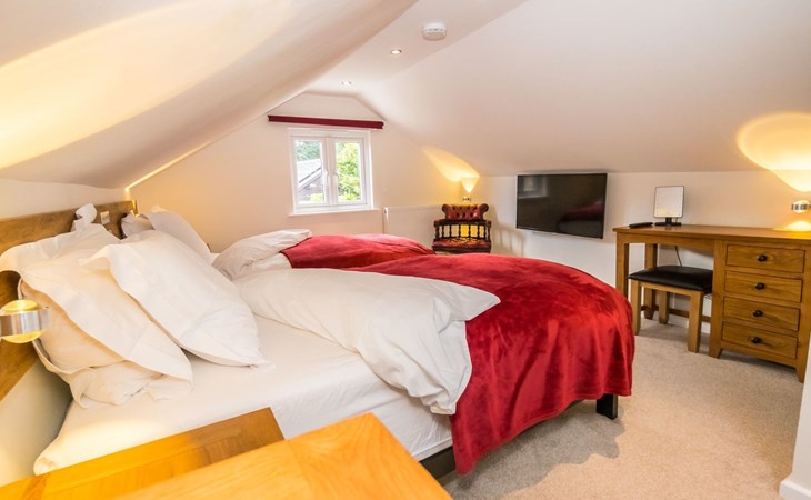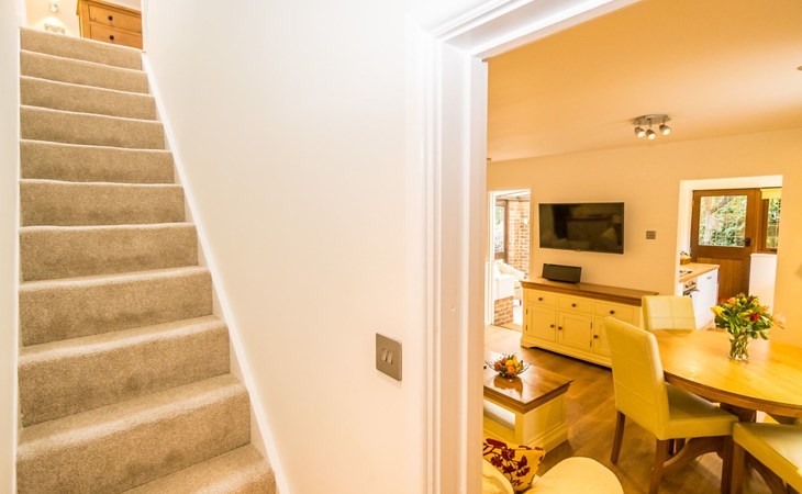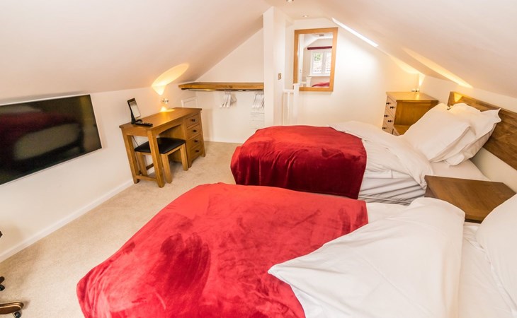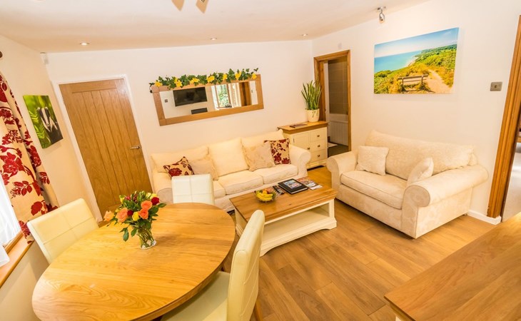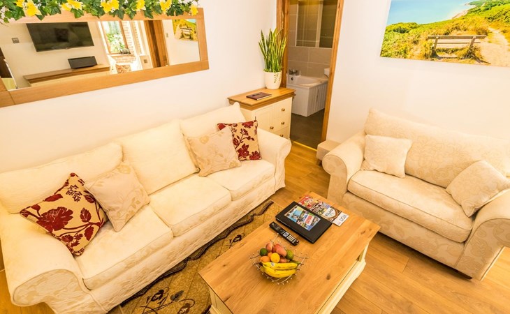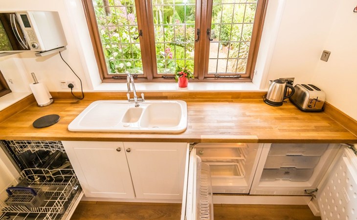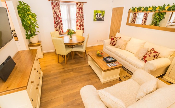 Das Cottage besteht aus einem Wohn- und Esszimmer mit viel Tageslicht und einer integrierten, offenen Küche sowie einem geräumigen Hauptschlafzimmer mit eigenem Bad, einem zweiten Loft-Schlafzimmer und einem weiteren separaten Bad. Das Wohnzimmer verfügt über ein bequemes Sofa, einen wandmontierten Flachbildfernseher mit Satellitenkanälen, einen DVD-Player, eine Stereoanlage und einen runden Esstisch aus Holz mit vier Stühlen. Die weiße Einbauküche daneben ist mit den neuesten Geräten ausgestattet, darunter ein Geschirrspüler, ein Cerankochfeld mit eleganter Dunstabzugshaube aus Edelstahl, ein Backofen, ein Kühlschrank mit Gefrierfach, eine Mikrowelle, ein Wasserkocher, ein Toaster und eine Kaffeemaschine. Das Hauptschlafzimmer ist mit einem Kingsize-Doppelbett (180 x 200 cm) ausgestattet und das große Schlafzimmer im Dachgeschoss hat zwei Einzelbetten (90 x 200 cm), die zusammengeschoben werden können. Das eigene Badezimmer ist mit einer modernen Duschkabine, einem Waschbecken mit Wandspiegel, einem Haartrockner und einer Toilette ausgestattet. Das separate Badezimmer neben dem Wohnzimmer ist genauso ausgestattet, hat aber eine Badewanne mit Duschvorrichtung. Im Eingangsbereich befindet sich auch eine Waschmaschine, die Sie benutzen können. Ein Hochstuhl für ein Kleinkind und ein Safe für Ihre Wertsachen sind vorhanden. Bettwäsche und Handtücher sind in ausreichender Menge vorhanden und der zuverlässige, schnelle WLAN-Internetanschluss im Ferienhaus kann kostenlos genutzt werden.