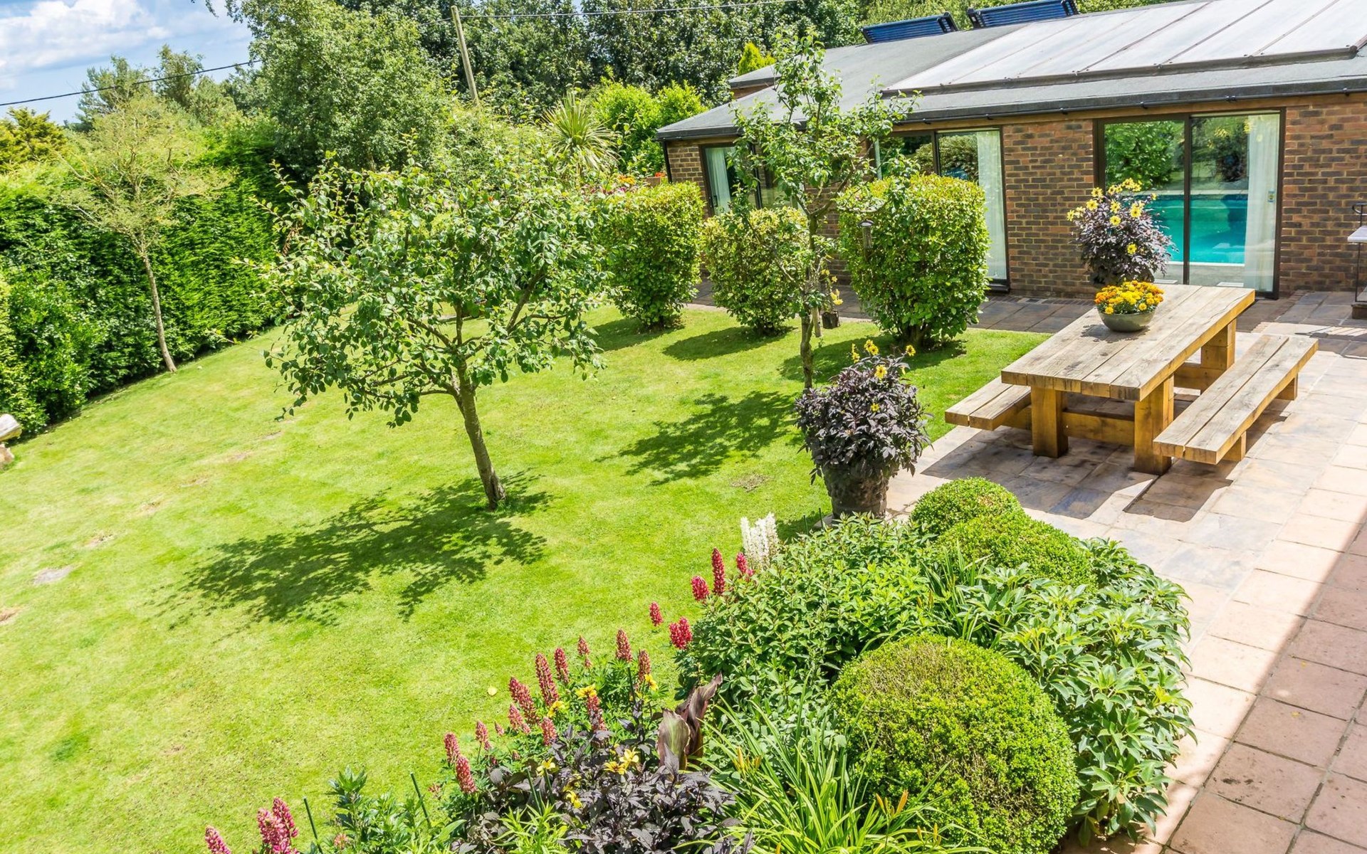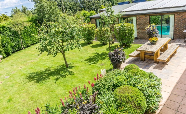 - komplett eingefriedet (mit Mauer, Zaun oder Hecke)