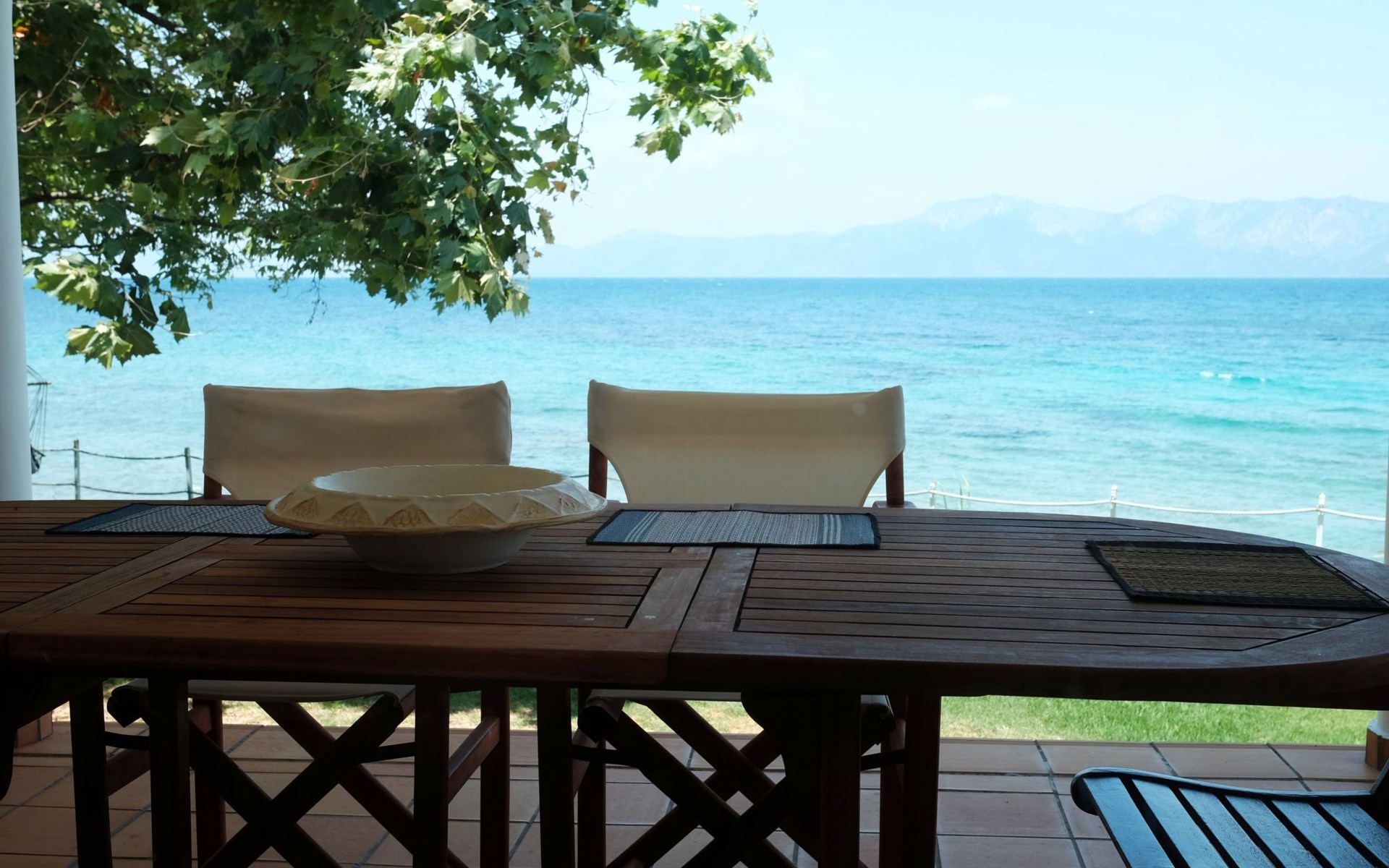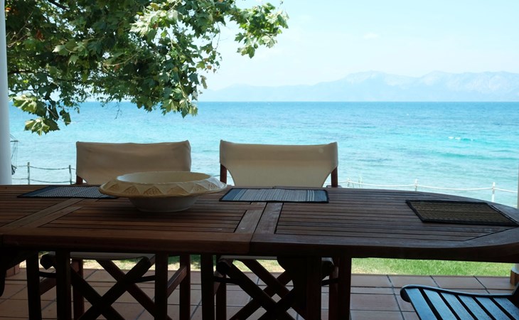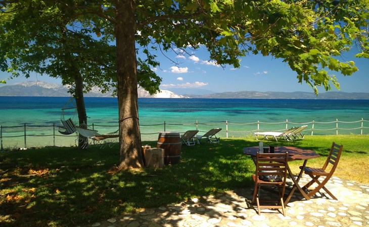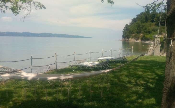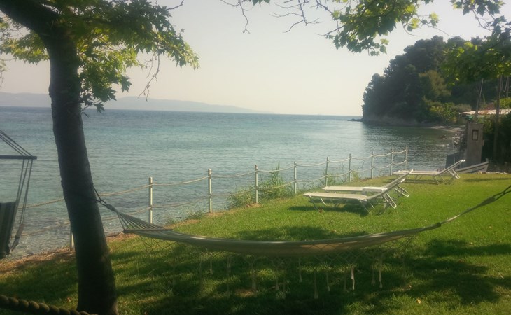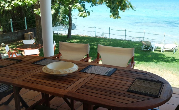 Das Haus befindet sich direkt am Meer. Der Bio-Garten mit 40 Obstbäumen aller Art.