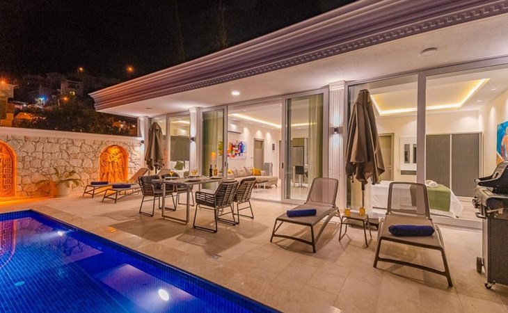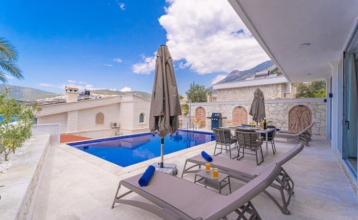 Die Lage der Villa ist unschlagbar. In nur wenigen Minuten erreichen Sie den malerischen Strand von Kalkan, wo Sie das kristallklare Wasser und die warme Sonne genießen können. Das charmante Stadtzentrum von Kalkan mit seinen Geschäften, Restaurants und Cafés ist ebenfalls leicht zu erreichen und lädt zu entspannten Spaziergängen und Erkundungstouren ein.