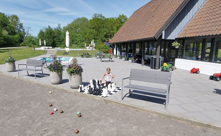 Feriendorf, Baujahr 1973. 125 m vom Meer. Zur Alleinbenutzung: Terrasse (16 m2). Lebensmittelgeschäft 2 km.