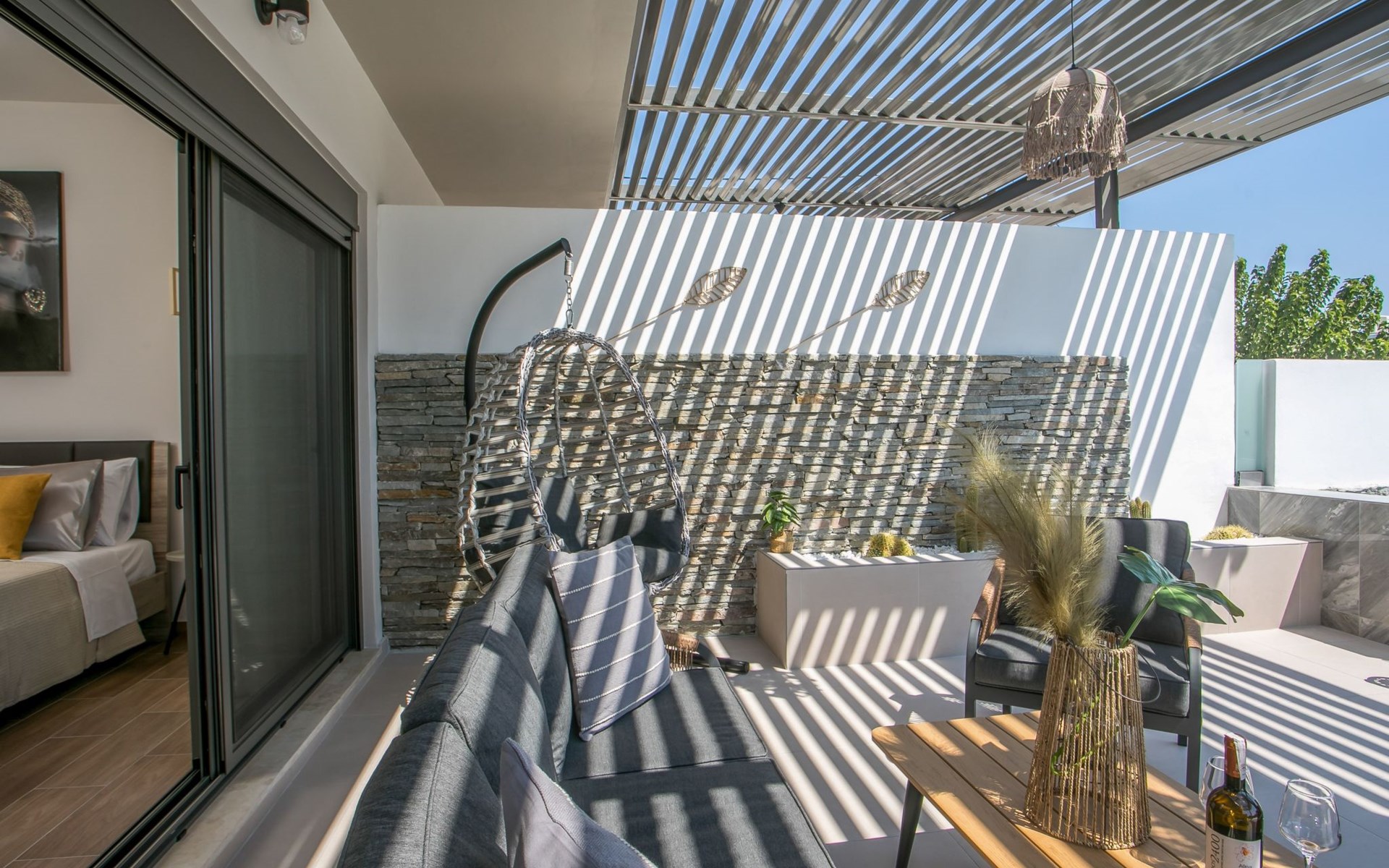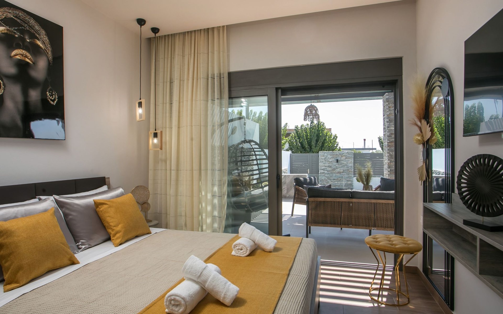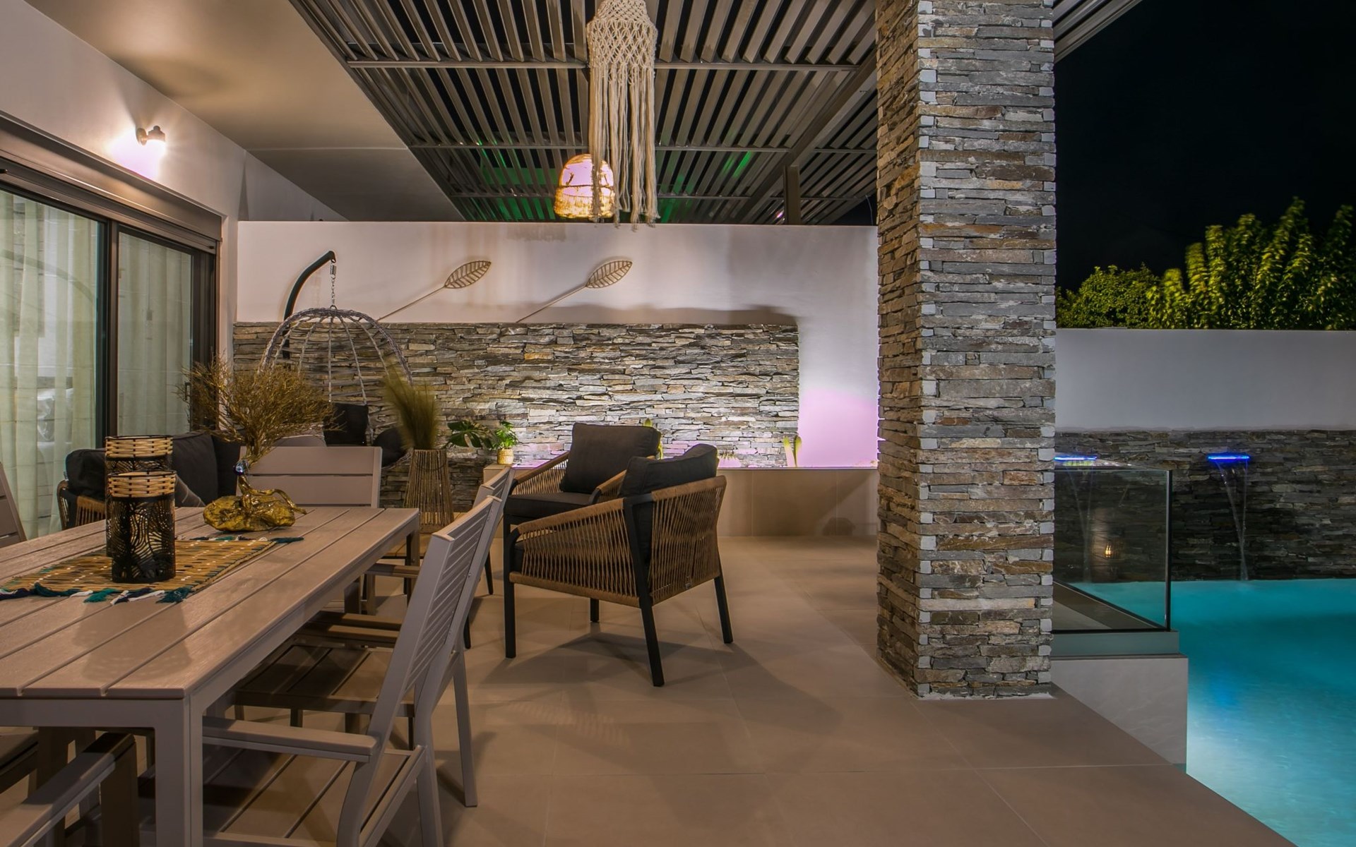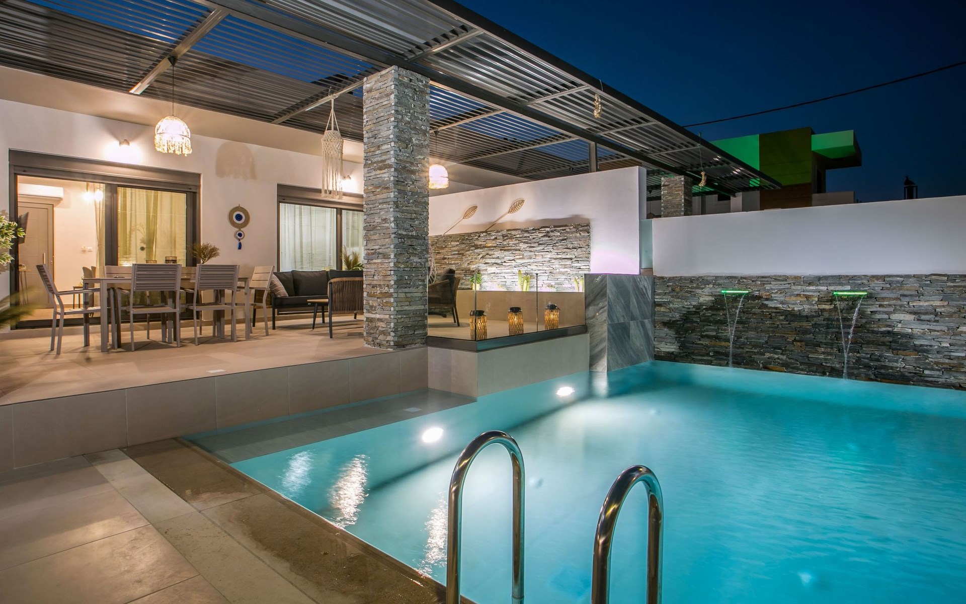 Im Außenbereich lädt ein großer privater Pool mit Liegen und Sonnenschirmen zum Entspannen ein, während der angrenzende Whirlpool luxuriöse Entspannung verspricht. Der Außenbereich der Villa umfasst auch einen stilvollen Essbereich mit Grill und ein gemütliches Wohnzimmer im Freien für abendliche Zusammenkünfte. Für zusätzlichen Komfort gibt es ein Badezimmer mit Dusche im Freien, so dass der Übergang vom Spaß am Pool zur Entspannung leicht ist.