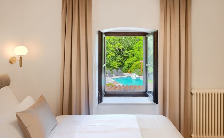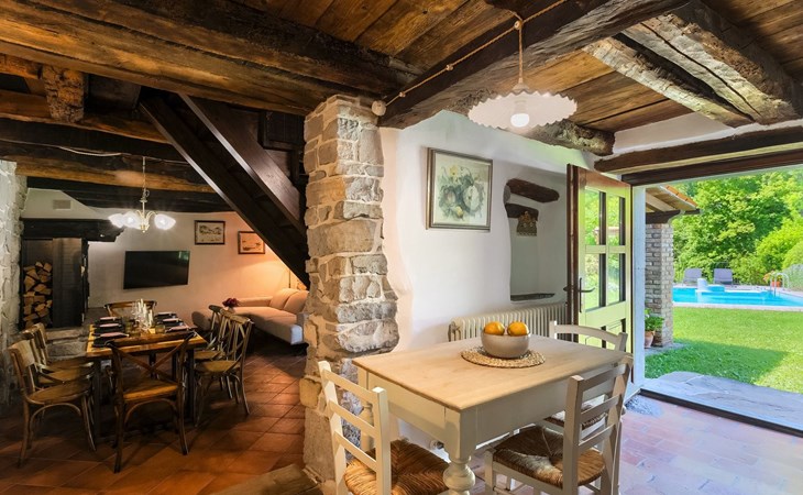 Einst eine alte Mühle, besticht die Villa Mulino heute durch ihren rustikalen Charme und spiegelt perfekt die autochthone Atmosphäre der Region wider. Die Villa erstreckt sich über drei Etagen, und der traditionelle Baustil zieht sich durch die gesamte Villa.