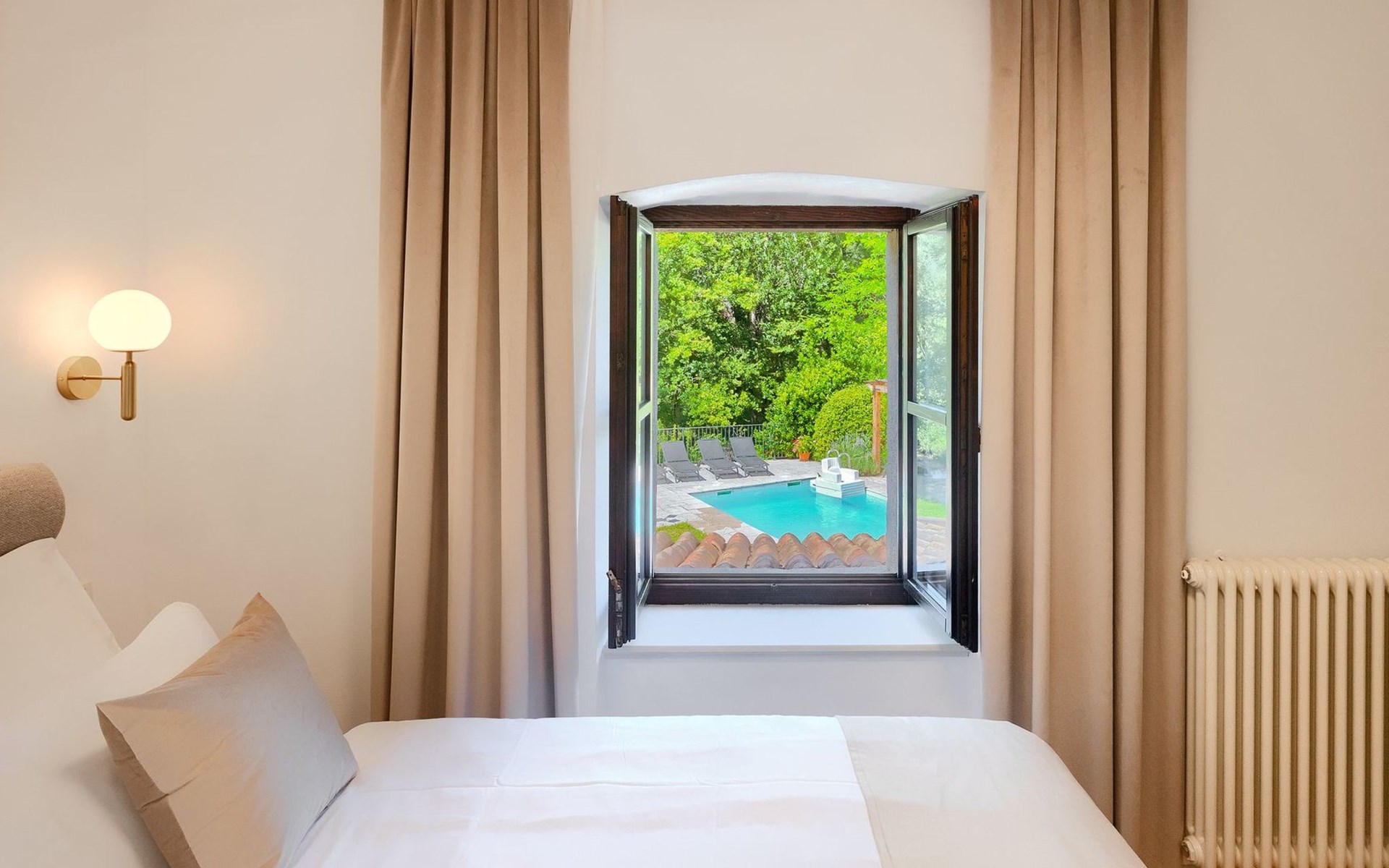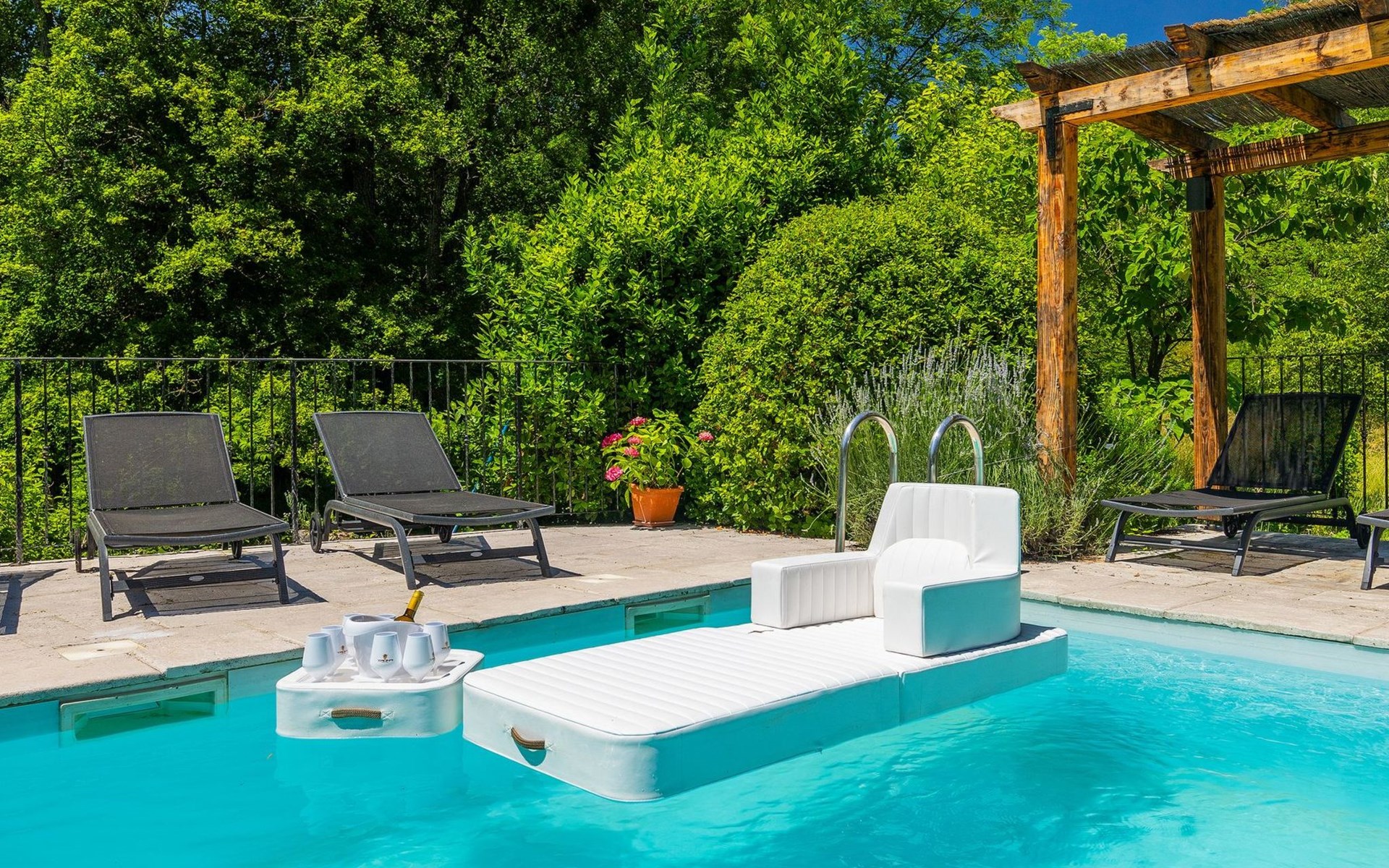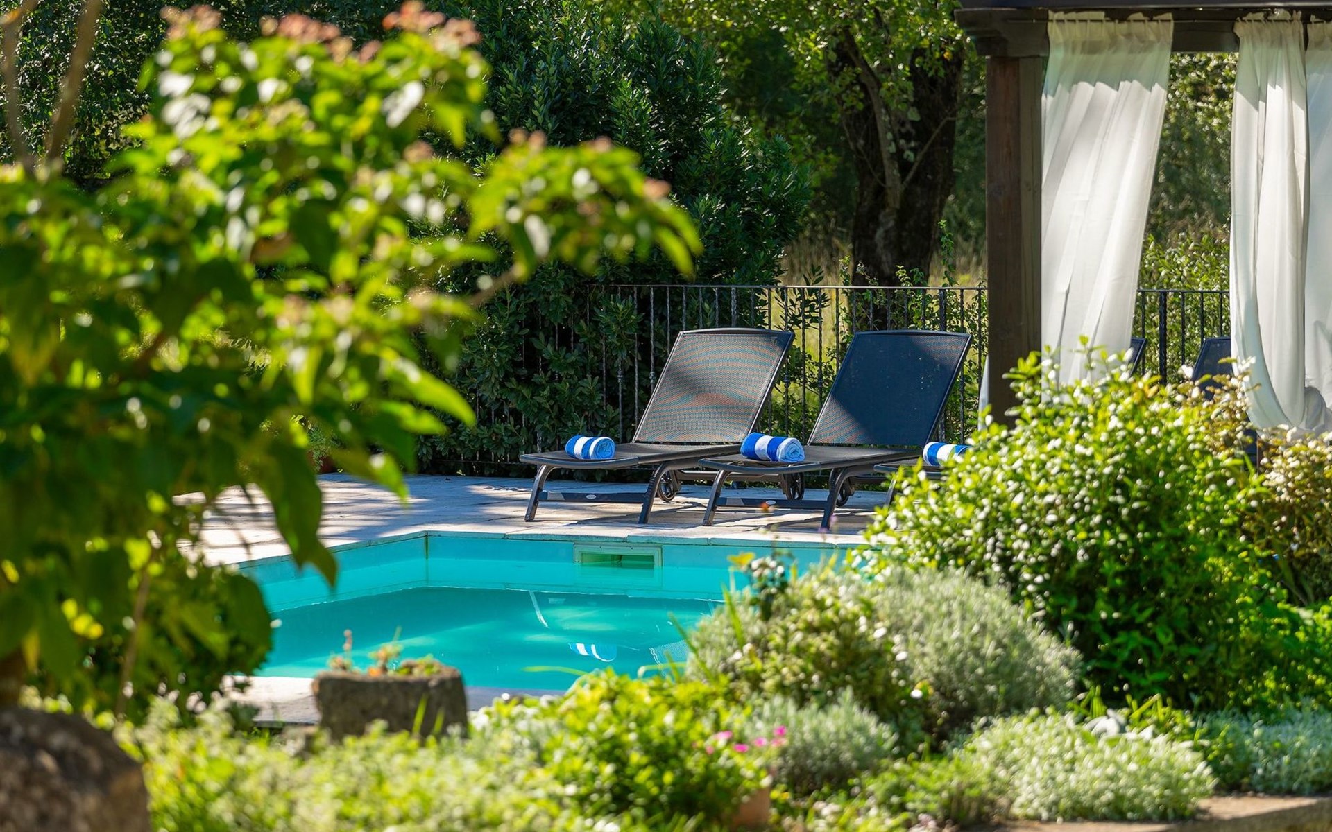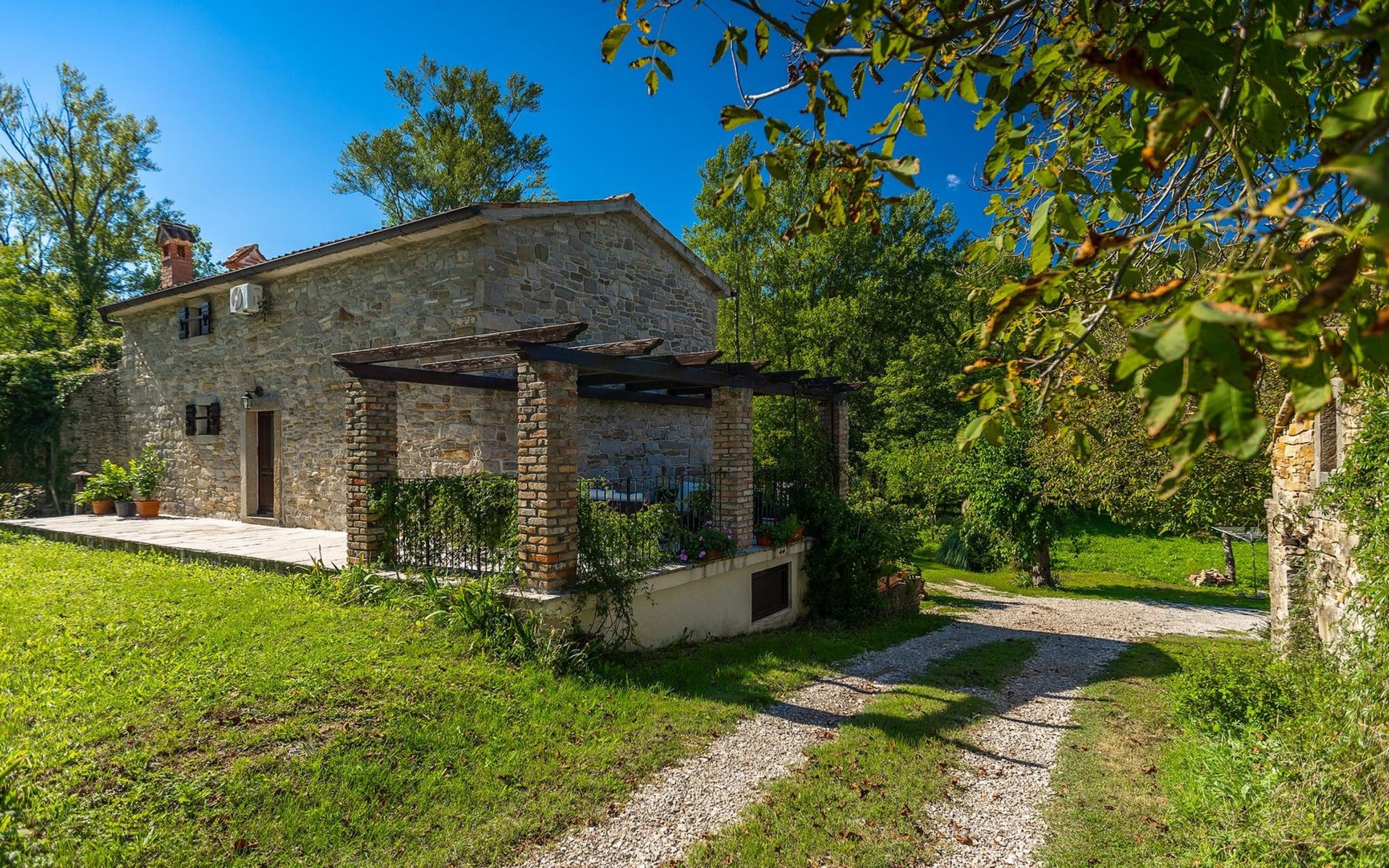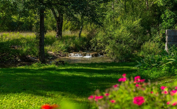 Umgeben von der Schönheit der grünen Landschaft wurde diese wunderbare Oase in ein charmantes Urlaubsdomizil verwandelt.