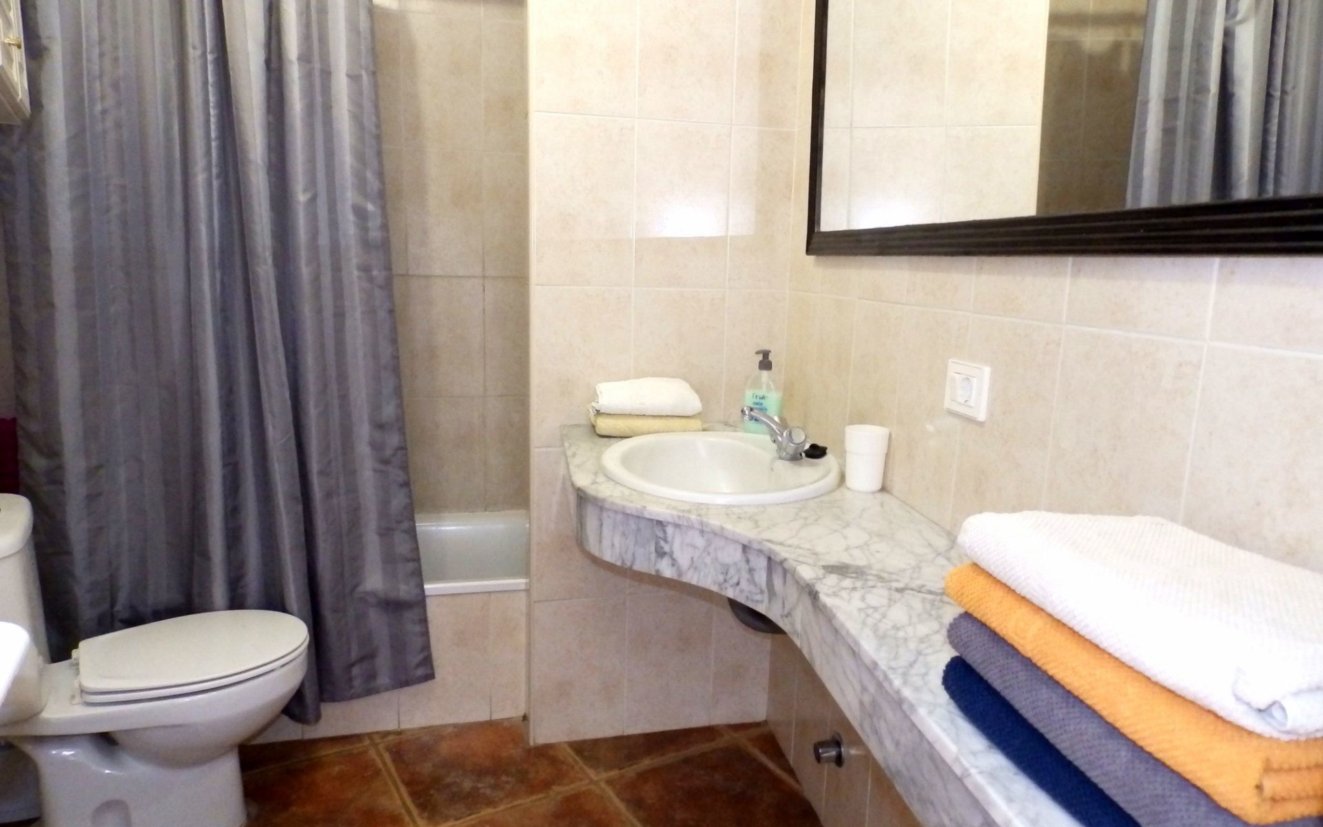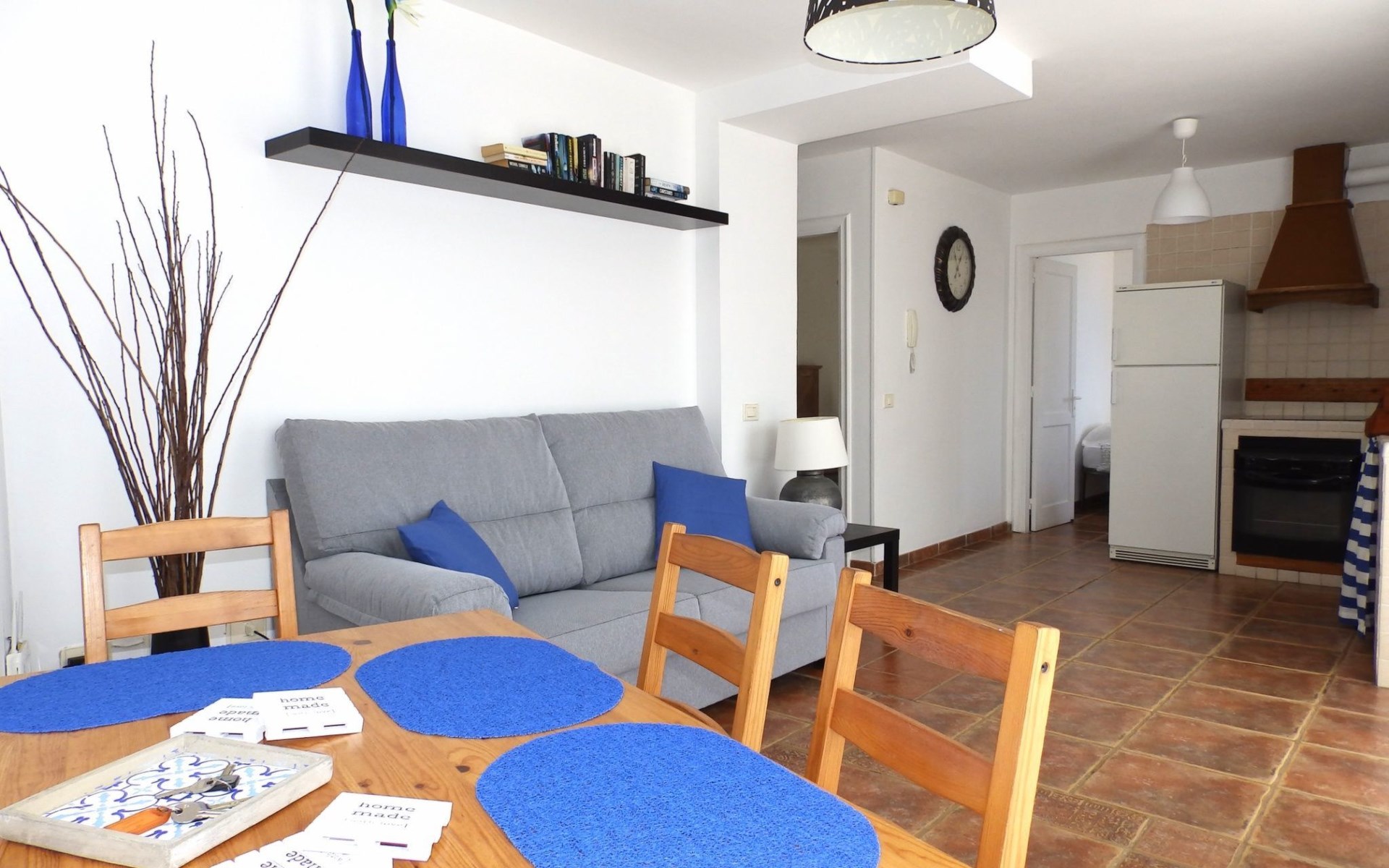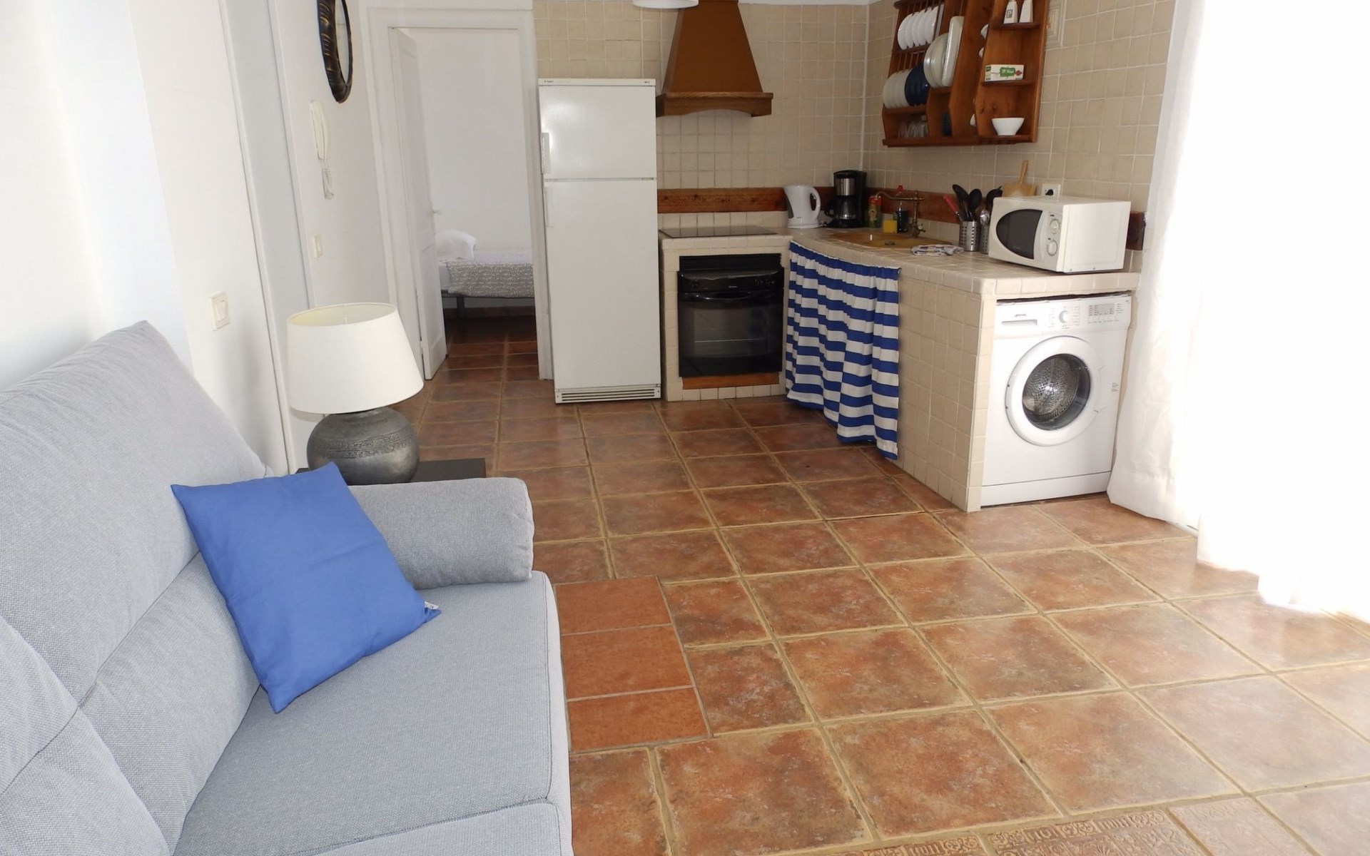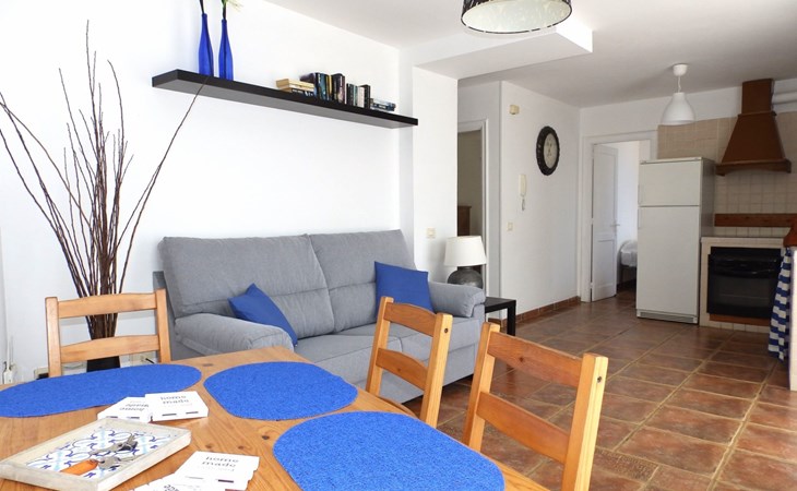 Die Einrichtung unseres Penthouses bietet alles, was Sie für einen gemütlichen und erholsamen Aufenthalt benötigen. Es bietet Platz für bis zu 4 Personen und verfügt über zwei Schlafzimmer: ein Hauptschlafzimmer mit einem Doppelbett und ein weiteres mit zwei Einzelbetten, so dass ein erholsamer Schlaf für alle gewährleistet ist. Ein komplettes Badezimmer mit Badewanne trägt zum Komfort Ihres Aufenthalts bei. Die Küche, die mit modernen Geräten und allen notwendigen Utensilien ausgestattet ist, öffnet sich zum Wohn-Esszimmer, das mit einem Sofa ausgestattet ist, in dem Sie auch kostenloses WLAN nutzen können, um sich nach einem Tag am Strand zu entspannen.