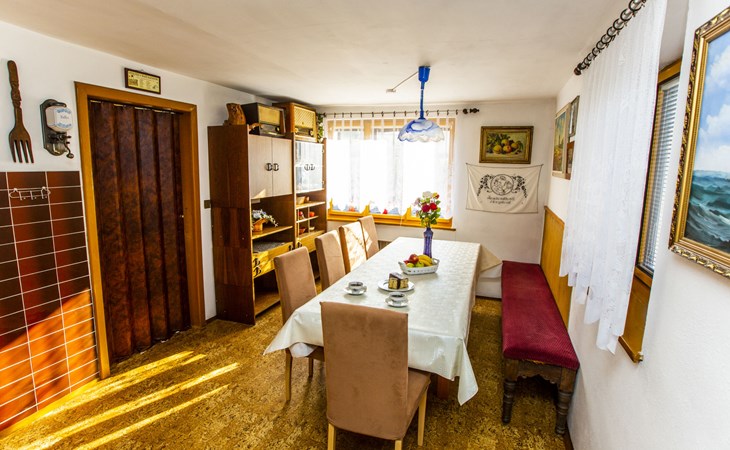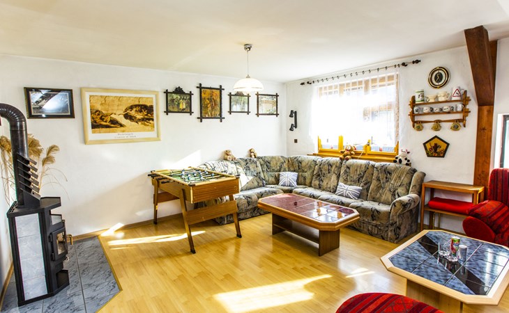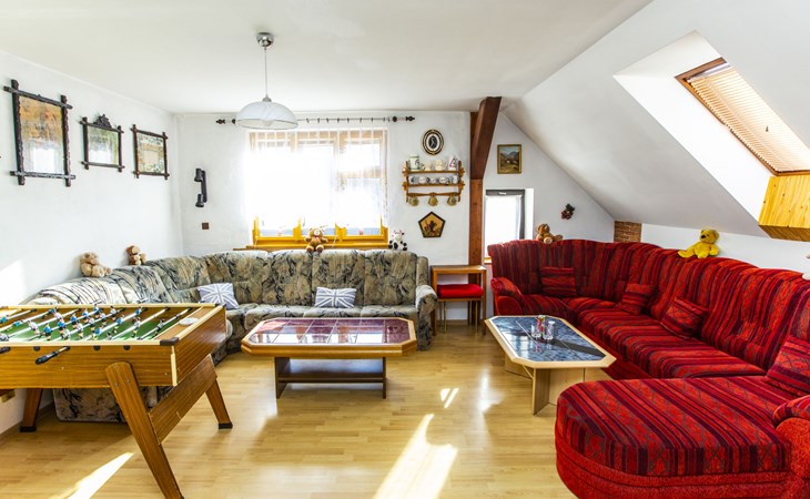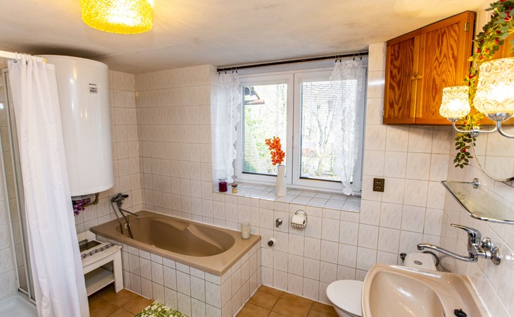 Gemütlicher, freistehender Landsitz "Křečovice", auf 2 Stockwerken, umgeben von Bäumen und Wiesen. Im Ortsteil Křečovice, am Ortsrand, 3 km vom Zentrum von Rovensko pod Troskami, ruhige, sonnige Lage, direkt am Waldrand, direkt am Bach. Zur Alleinbenutzung: Grundstück (eingezäunt). Pergola, Gartenmöbel, Grill, Feuerstelle, Kinderspielplatz (Schaukel, Sandkasten). In der Anlage: Sauna, Tischfussball, Einstellraum für Fahrräder, Skiraum. Parkplatz auf dem Grundstück. Einkaufsgeschäft 3 km, Einkaufszentrum 11 km, Restaurant 3 km, Bushaltestelle "Křečovice" 150 m, Bahnstation "Rovensko pod Troskami" 3 km, Freibad 6 km. Skilift 8 km. Nahe gelegene Sehenswürdigkeiten: Hrad Trosky, Hrubá Skála/CHKO Český ráj 8 km, Lázně Sedmihorky 9 km, Rozhledna Kozákov 10 km, Hrad Valdštejn, Zbiroh, Semily, Turnov, Prachovské skály 12 km, Hrad Kost 18 km. Bekannte Skigebiete sind gut erreichbar: Kozákov 5 km, Vysoké nad Jizerou 25 km.