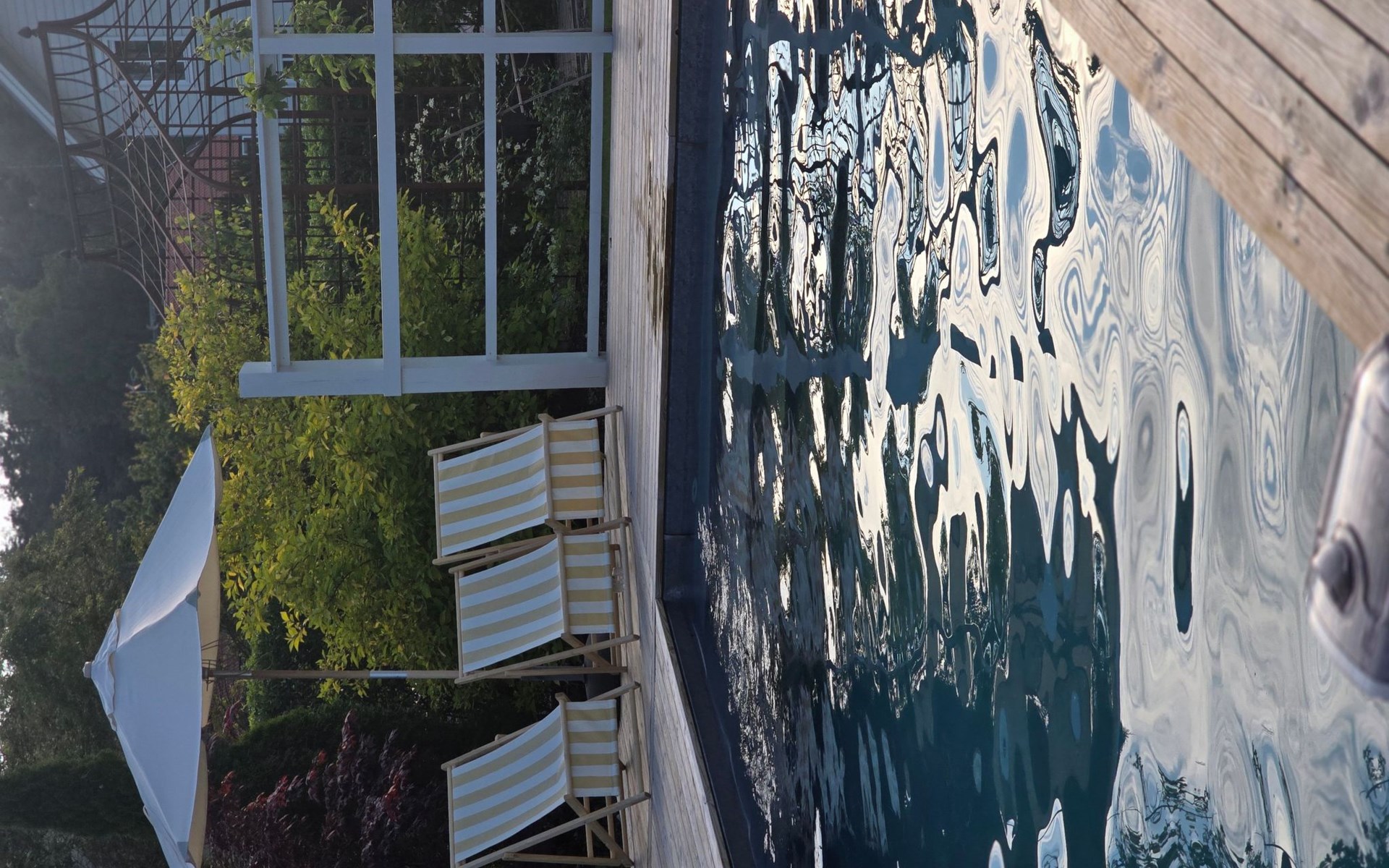 Poolbereich mit beheiztem Pool, Sauna und Ruheraum. Den Kindern stehen außerdem ein Spielhaus, ein Trampolin und Spielzeug für draußen zur Verfügung