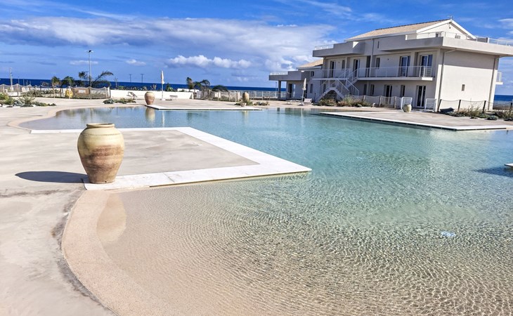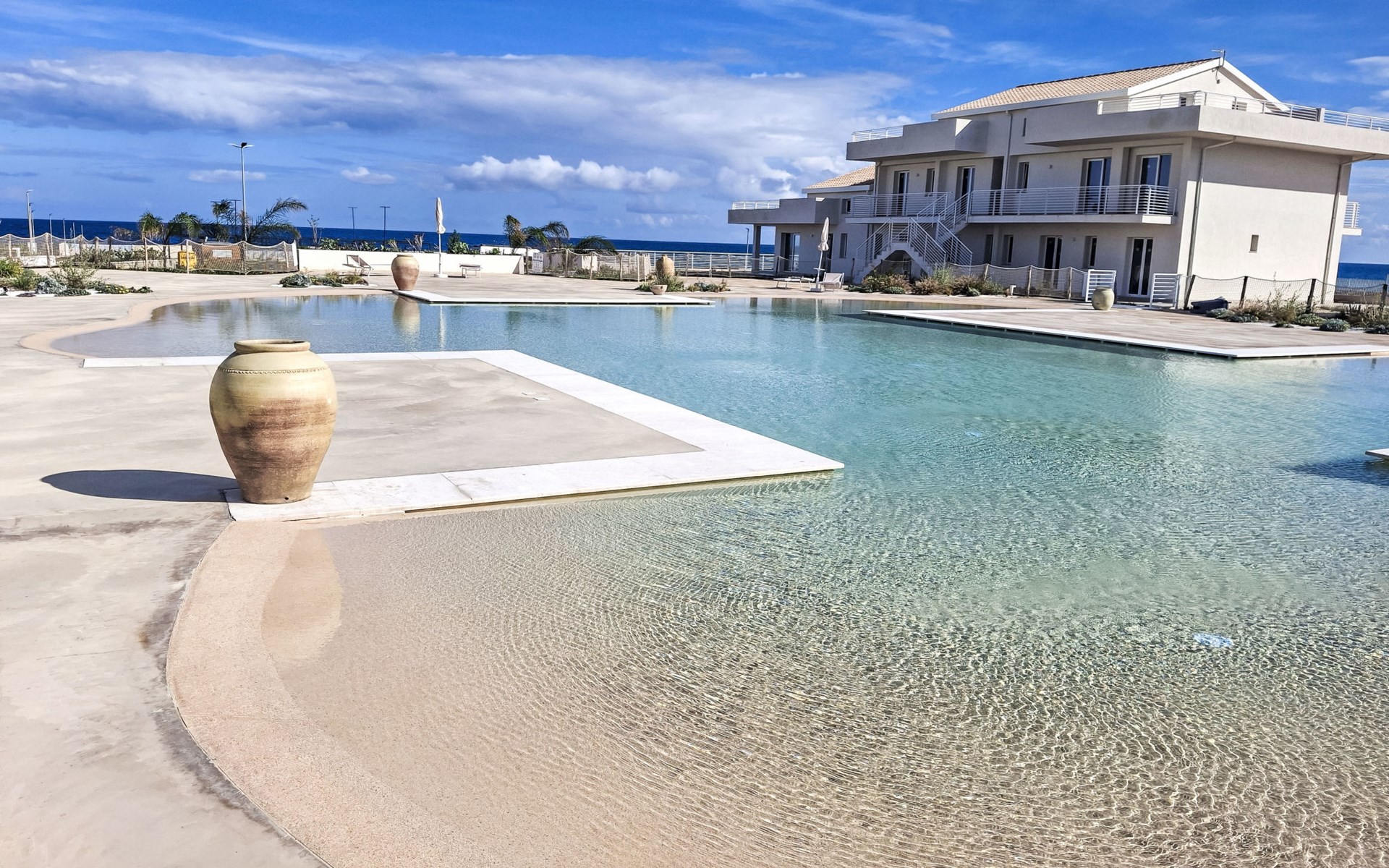 Residenz, Baujahr 2024. Im Ortsteil Marzamemi, 5 km vom Zentrum von Pachino, 200 m vom Meer, 200 m vom Strand. Zur Mitbenutzung: Schwimmbad (20 x 7 m, 140 cm tief, saisonale Verfügbarkeit: 15.Apr. - 20.Okt. Öffnungszeiten Schwimmbad: 07:00-14:00 und 16:00-20:00). Kinderbecken. Supermarkt 4.5 km, Restaurant 2.3 km, Bushaltestelle 4.5 km, Sandstrand "del Gavettone" 500 m, Felsstrand "del Gavettone" 600 m. Nahe gelegene Sehenswürdigkeiten: Portopalo di Capopasero 6 km, Isola delle Correnti Punto Sud Sicilia 13 km, Noto 25 km, Ispica 26 km, Modica 50 km, Ragusa 65 km. Wandergebiete: Riserva Natutare Faunistica di Vendicari 16 km, Laghetti Cavagrande del Cassibile 40 km. Bitte beachten: Fahrzeug empfohlen. Badekappenpflicht.