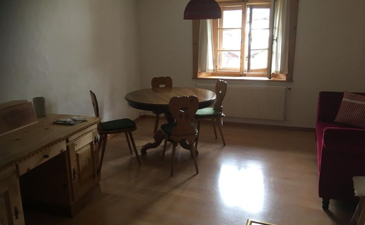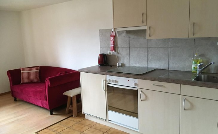Die Wohnung ist geeignet für 2 Personen oder kleine Familien. Die Wohnung hat ein Schlafzimmer und eine Wohnküche mit Tisch und Sofa. Das Badezimmer ist neu renorviert und hat eine begehbare Dusche. Von dem Balkon aus hat man eine wunderschöne Aussicht auf die Berge.