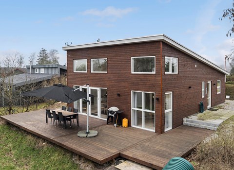 Südlich von Skagen und in der Nähe des gemütlichen Fischerdorfes Ålbæk liegt dieses Ferienhaus auf einem schönen Grundstück mit Aktivitätsmöglichkeiten für die ganze Familie. Der Küchenbereich steht in Verbindung mit dem Wohnzimmer, das mit guten Möbeln eingerichtet ist. Dies macht das Haus für 2 Familien geeignet. Das Badezimmer verfügt sowohl über einen Whirlpool als auch über eine Sauna.