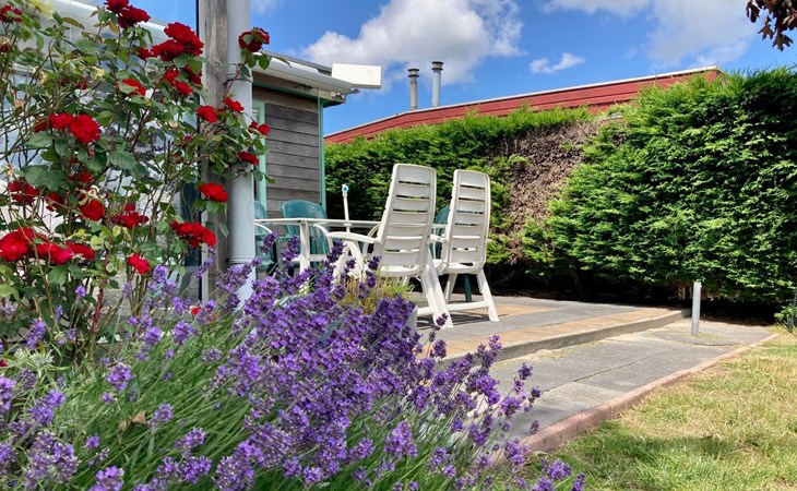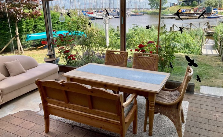 Den Gästen steht ein kleiner Garten direkt am Lauwersmeer mit eigenem Angel- und Bade-steg und eine Terrasse mit Gartenmöbeln zur Verfügung. Eigener Parkplatz für 2 Autos, gut eingezäunt.