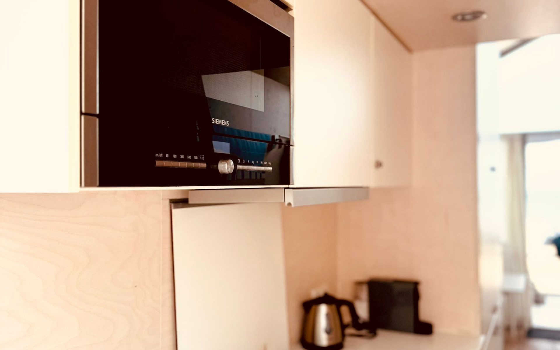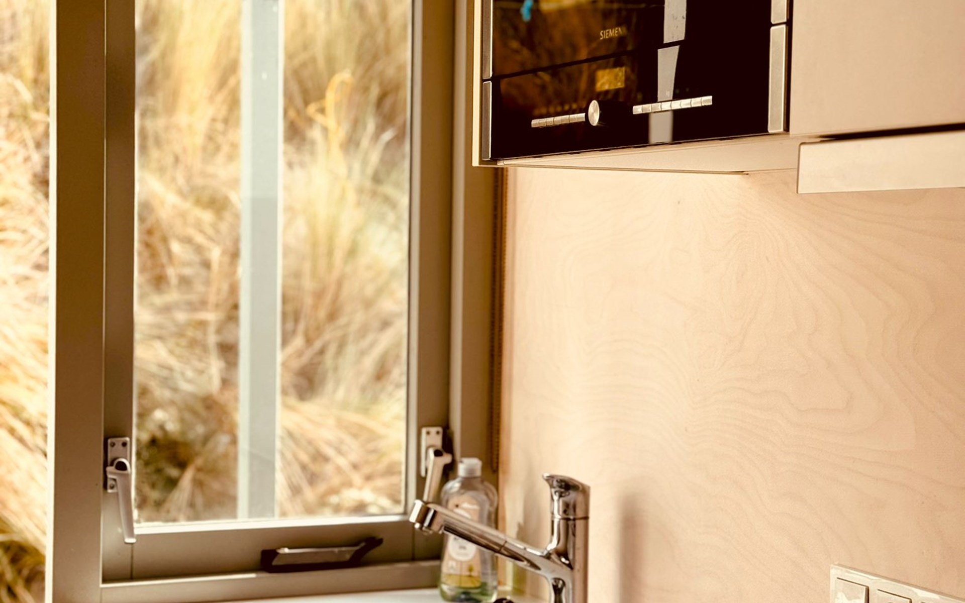 Nach einem morgendlichen Spaziergang am Strand setzen Sie sich an den Esstisch für Kaffee aus der eigenen Küche und frisches Brot, während Sie auf das Meer blicken. Die offene Küche ist komplett ausgestattet: Gasherd, Ofen, Mikrowelle, Kühlschrank mit Gefrierfach, Toaster und zwei Kaffeemaschinen (Nespresso und Filterkaffee). Zusammen kochen mit Blick auf den Strand ist hier möglich.