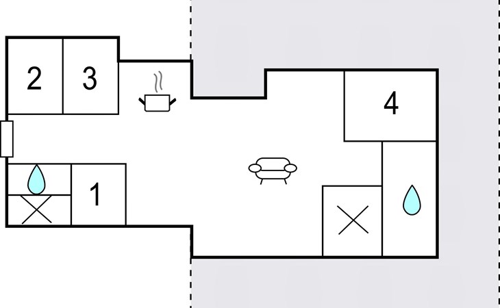 Es hat 2 Badezimmer und eignet sich daher ideal für 2 Familien. Im großen Wohnzimmer mit zwei Sofagruppen, dem Essbereich und der Küche ist viel Platz für alle. Sie haben Zugang zu einem Gemeinschaftshaus mit Swimmingpool, Sauna und Spielplatz im Freien für die kleinsten Gäste.