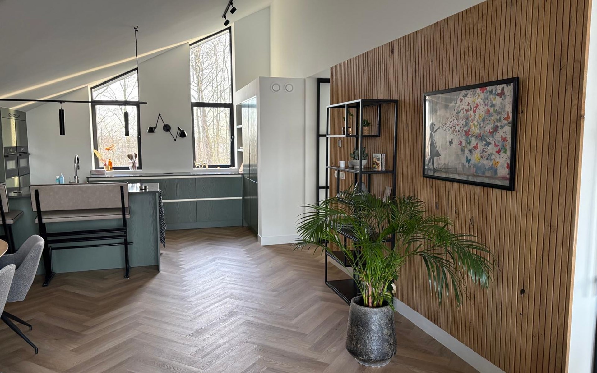 Die gemütliche, luxuriös ausgestattete Küche ist mit allen modernen Annehmlichkeiten ausgestattet. Dazu gehören ein Doppelkühlschrank mit Gefrierfach und eine Doppel-Kombi-Mikrowelle. Außerdem gibt es ein Induktionskochfeld mit integrierter Dunstabzugshaube und einen Geschirrspüler. Für Kaffee- und Teeliebhaber gibt es eine Kaffeebohnenmaschine, eine Nespresso-Kaffeemaschine und einen Quooker.