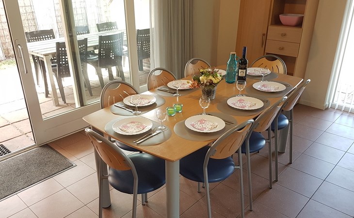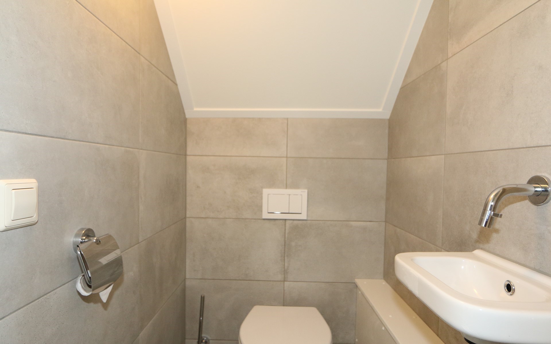 Das Ferienhaus hat ein gemütliches Wohnzimmer mit angrenzendem Essbereich und komplett ausgerüsteter, offener Küche. Die Küche grenzt an den Essbereich der mit Schiebentüren die zum Garten hinaus führen, wo Sie von einem leckeren Frühstück auf der Terrasse genießen können. Im Haus befinden sich drei Schlafzimmer. Das Hauptschlafzimmer befindet sich im Erdgeschoss und verfügt über ein komfortables Boxspringbett. Bei den anderen Schlafzimmern finden Sie auch noch weiteren Stellplatz für ein Beistellbett. Es stehen Ihnen zwei Badezimmer zur Verfügung, wobei eins davon mit einer ebenerdigen Dusche ausgestattet und sich im Erdgeschoss befindet und das andere mit einer normalen Dusche, dies finden Sie im Obergeschoss. Zwei separate Toiletten sind auch anwesend.