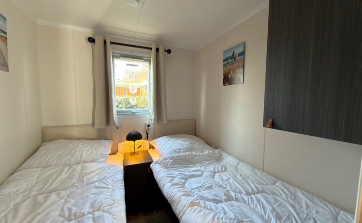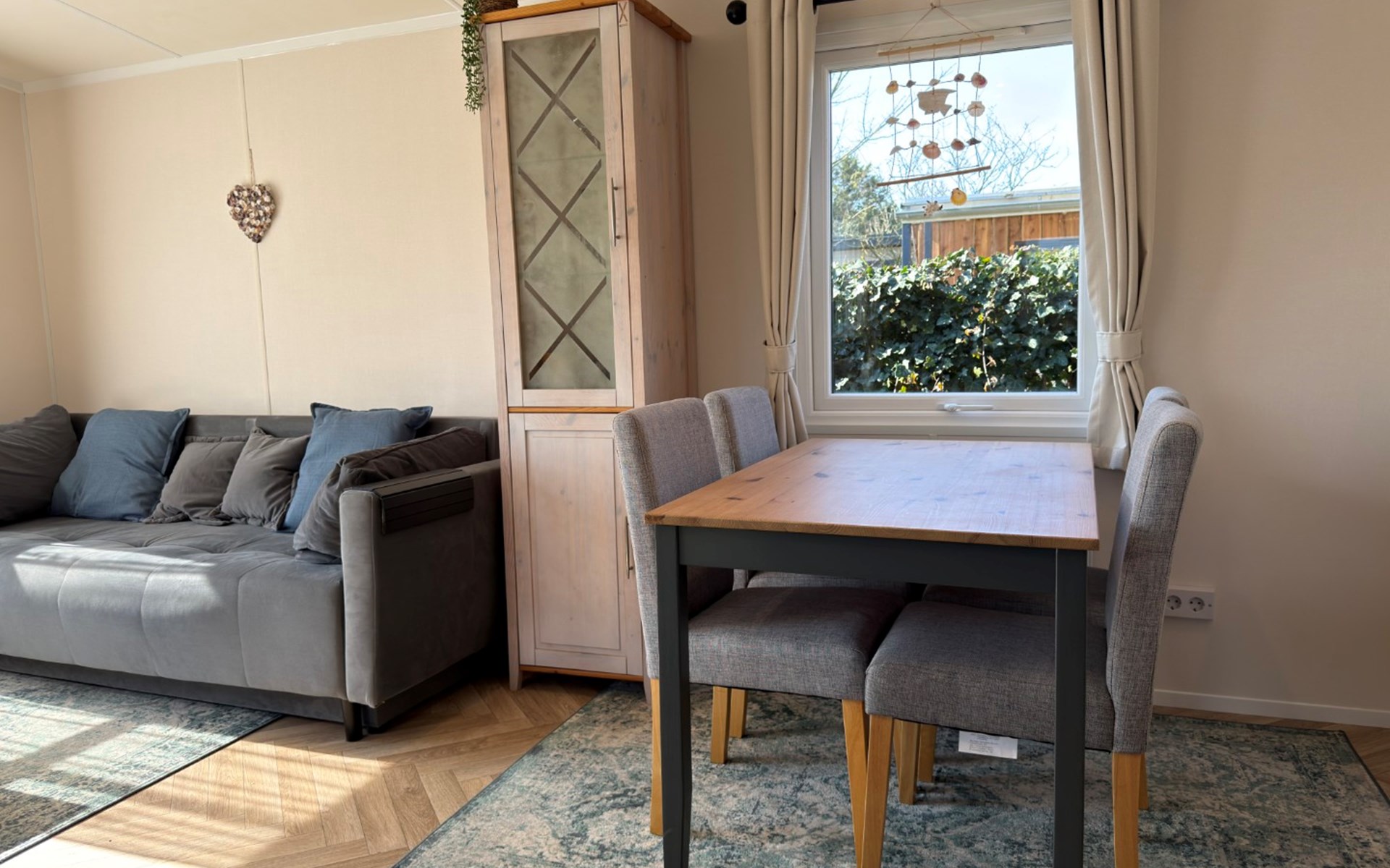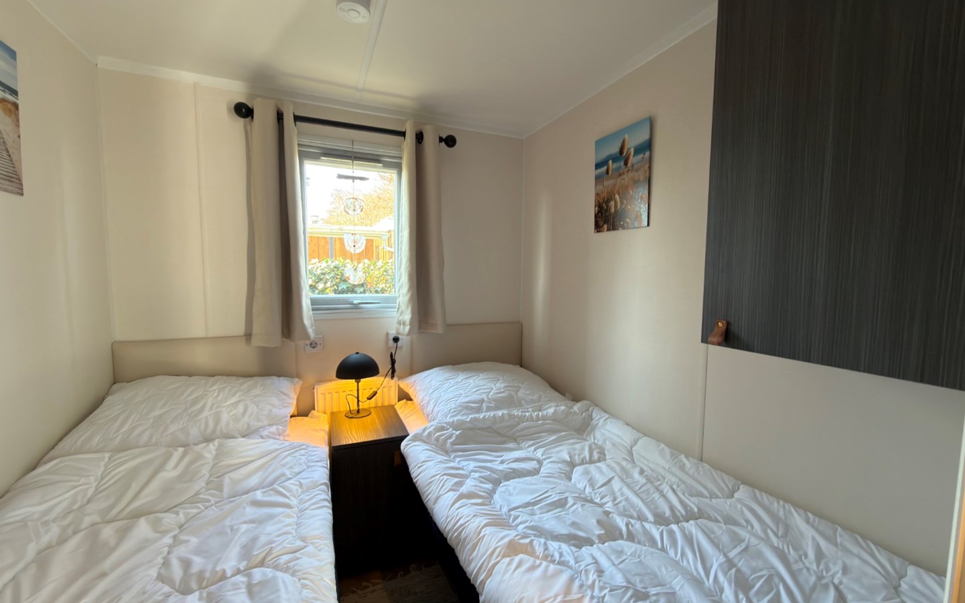 Das Chalet verfügt über zwei Schlafzimmer: eines mit einem komfortablen Doppelbett und ein zweites mit zwei Einzelbetten. Zusätzlich finden Sie im Wohnzimmer ein Schlafsofa für eine Person.