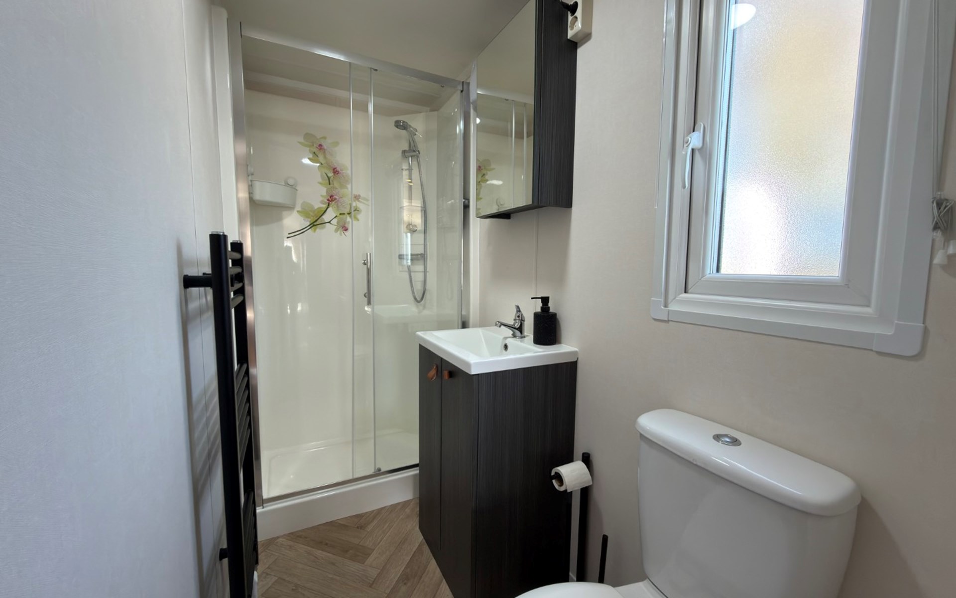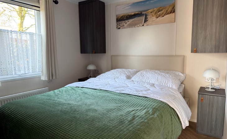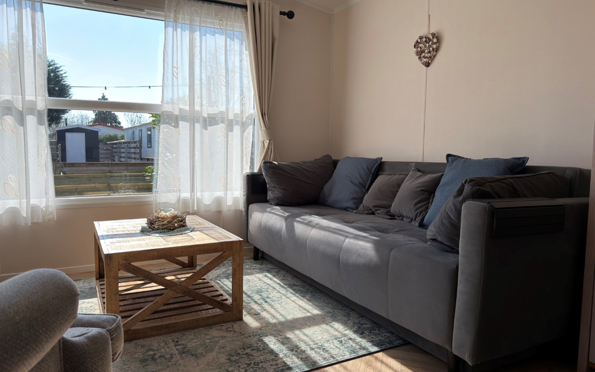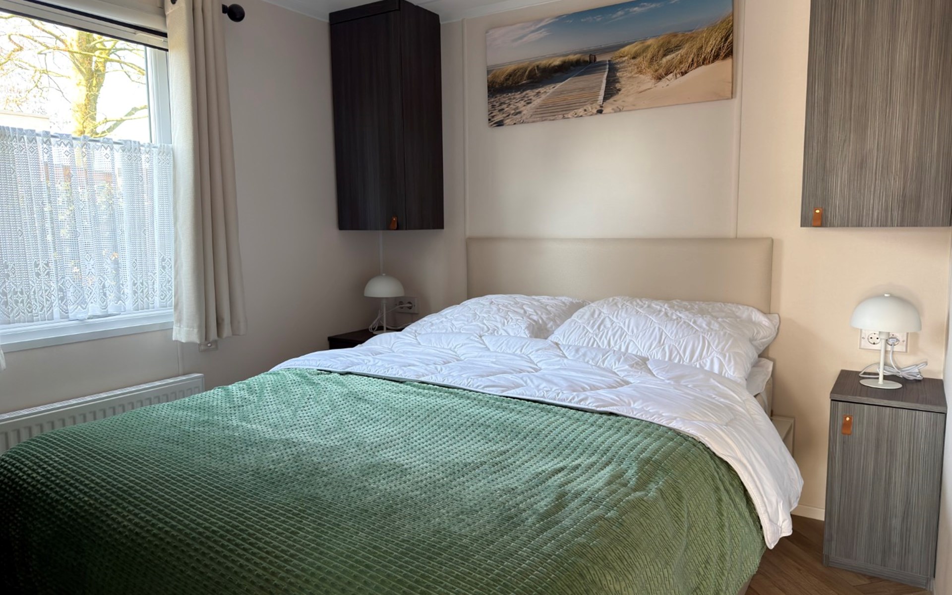 Das Chalet verfügt über zwei Schlafzimmer: eines mit einem komfortablen Doppelbett und ein zweites mit zwei Einzelbetten. Zusätzlich finden Sie im Wohnzimmer ein Schlafsofa für eine Person.