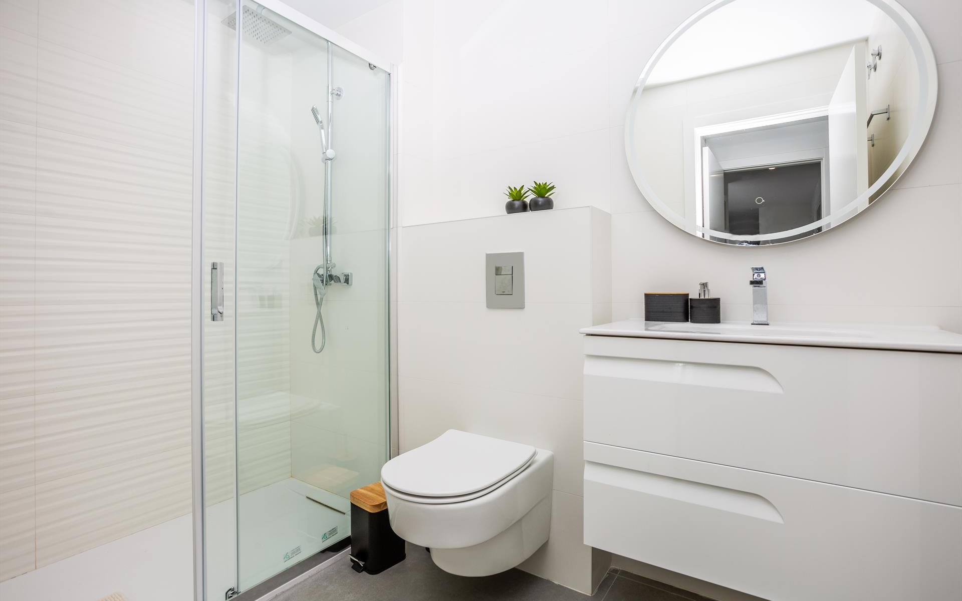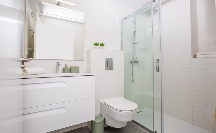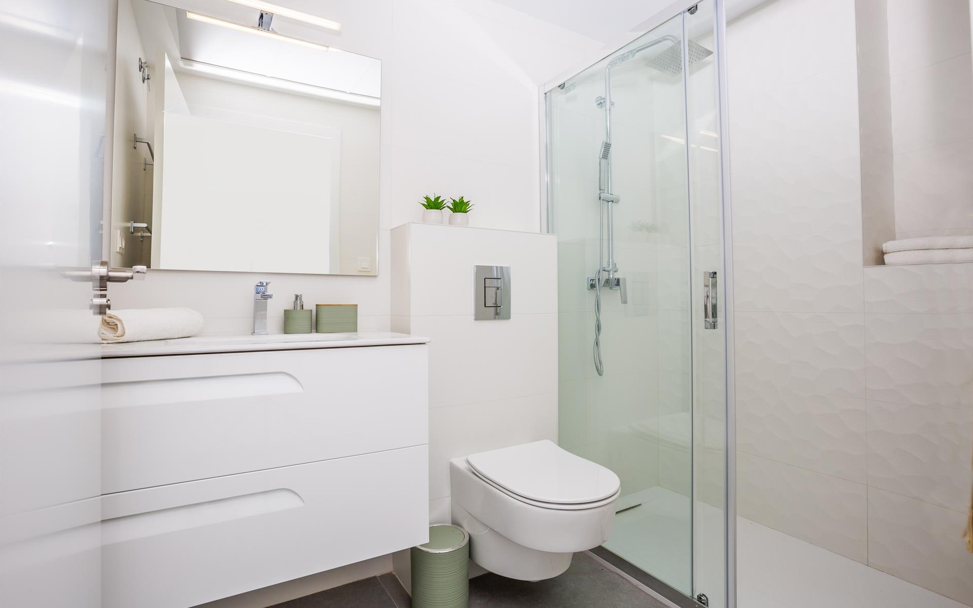 - Eigenes Badezimmer mit Einzelwaschbecken, Dusche und Toilette