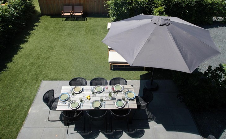 Hinter der Dünenlodge befindet sich ein schöner Garten in sonniger Lage, in dem bequeme Gartenmöbel auf Sie warten. Dort können Sie gemeinsam eine Tasse Kaffee oder ein gutes Glas Wein genießen.