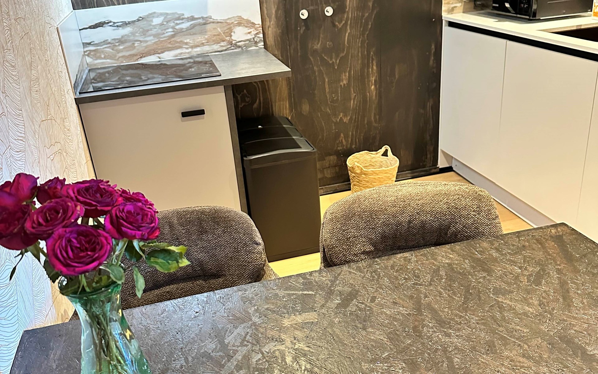 Im Erdgeschoss finden Sie eine kompakte Küche, die mit einem Herd mit Dunstabzugshaube, einem Kombi-Backofen, einer Spülmaschine, einem Kühlschrank mit Gefrierfach, einer Nespresso-Kaffeemaschine, einem Wasserkocher, Geschirr und Kochutensilien ausgestattet ist. Im Erdgeschoss finden Sie auch einen kompakten Esstisch mit 4 komfortablen Stühlen und einen Smart-TV.