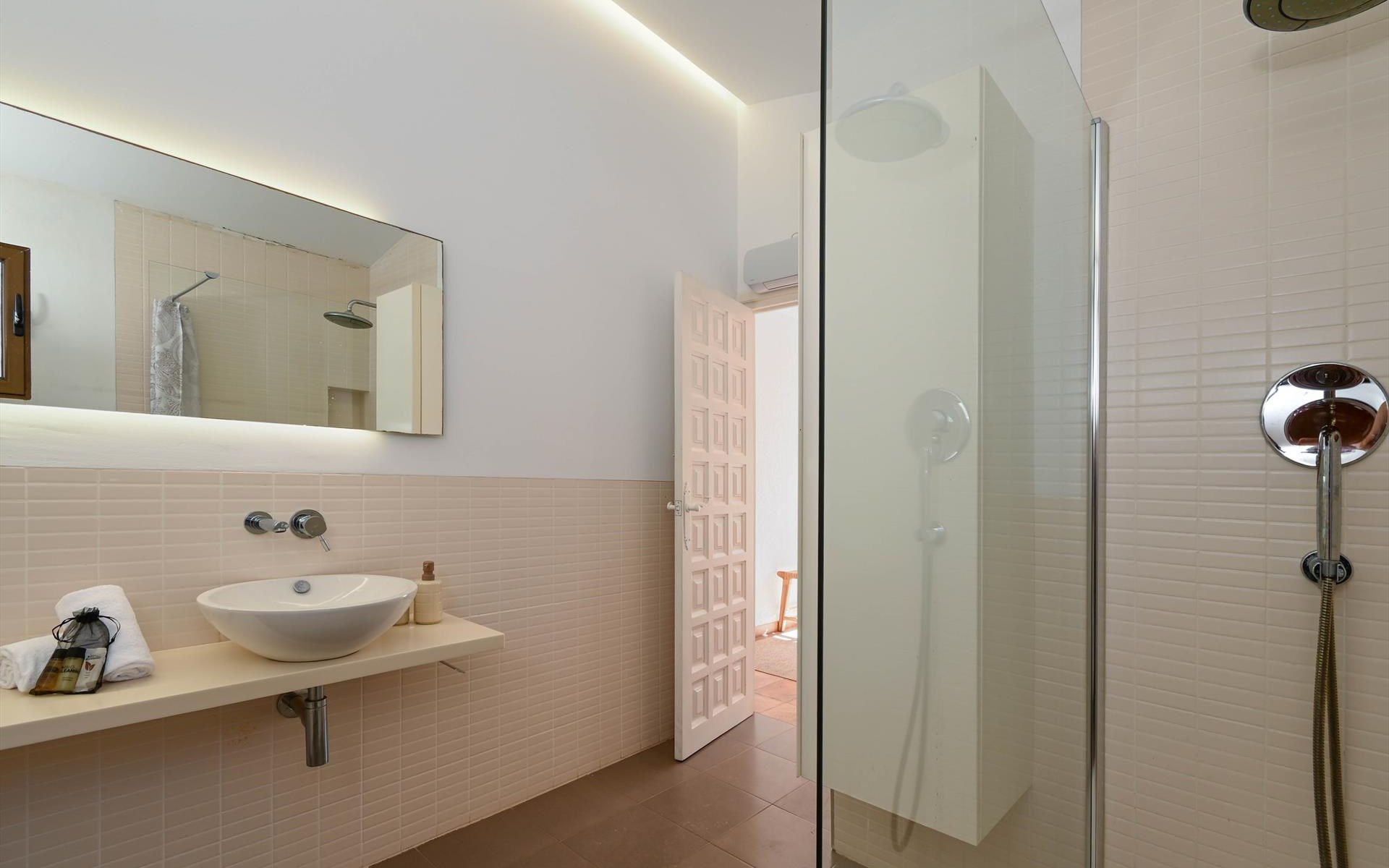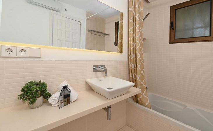 - Schlafzimmer mit Klimaanlage, Kingsize-Bett (200 x 180 cm) und en-suite Badezimmer