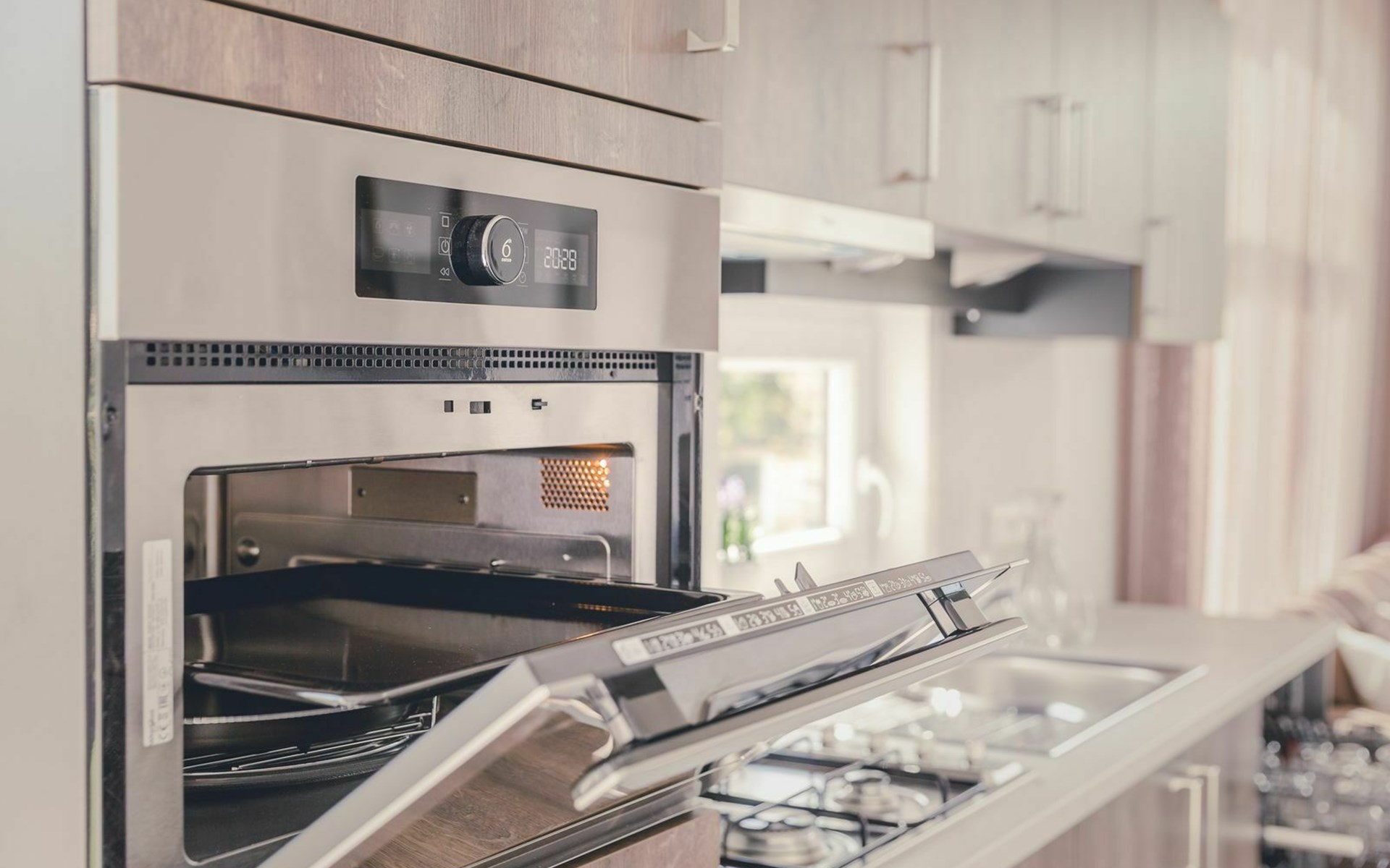 Innen findest du eine vollständig ausgestattete Küche. Ja, auch mit Spülmaschine. Das Badezimmer ist geräumig und bietet dir einen entspannten Start in den Tag.