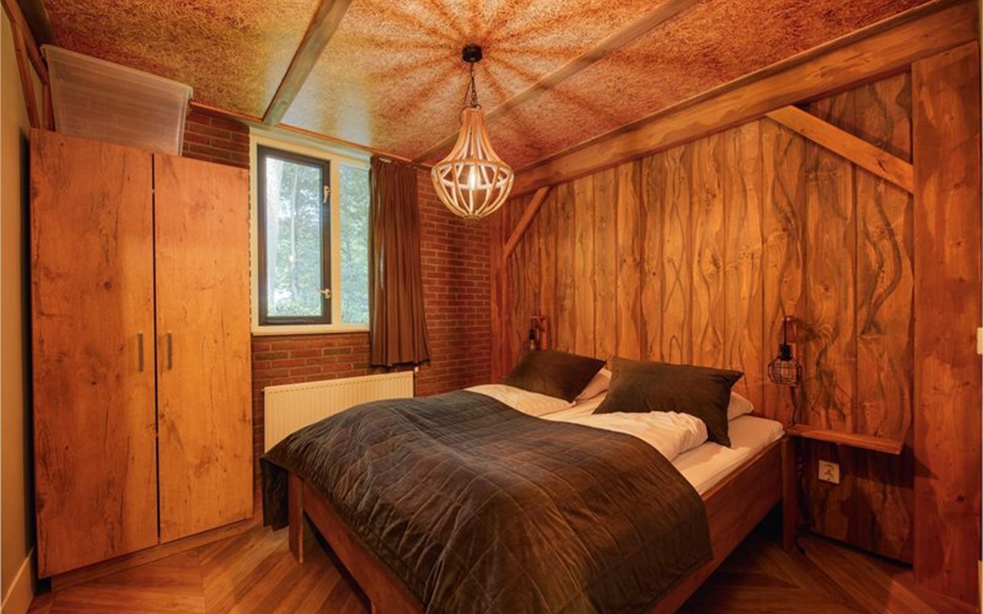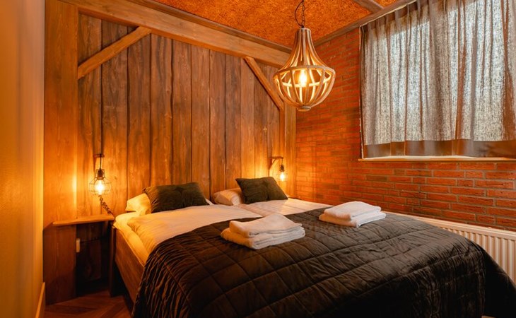 • Elternschlafzimmer mit Doppelbett, wie eine edle Heuscheune gestaltet