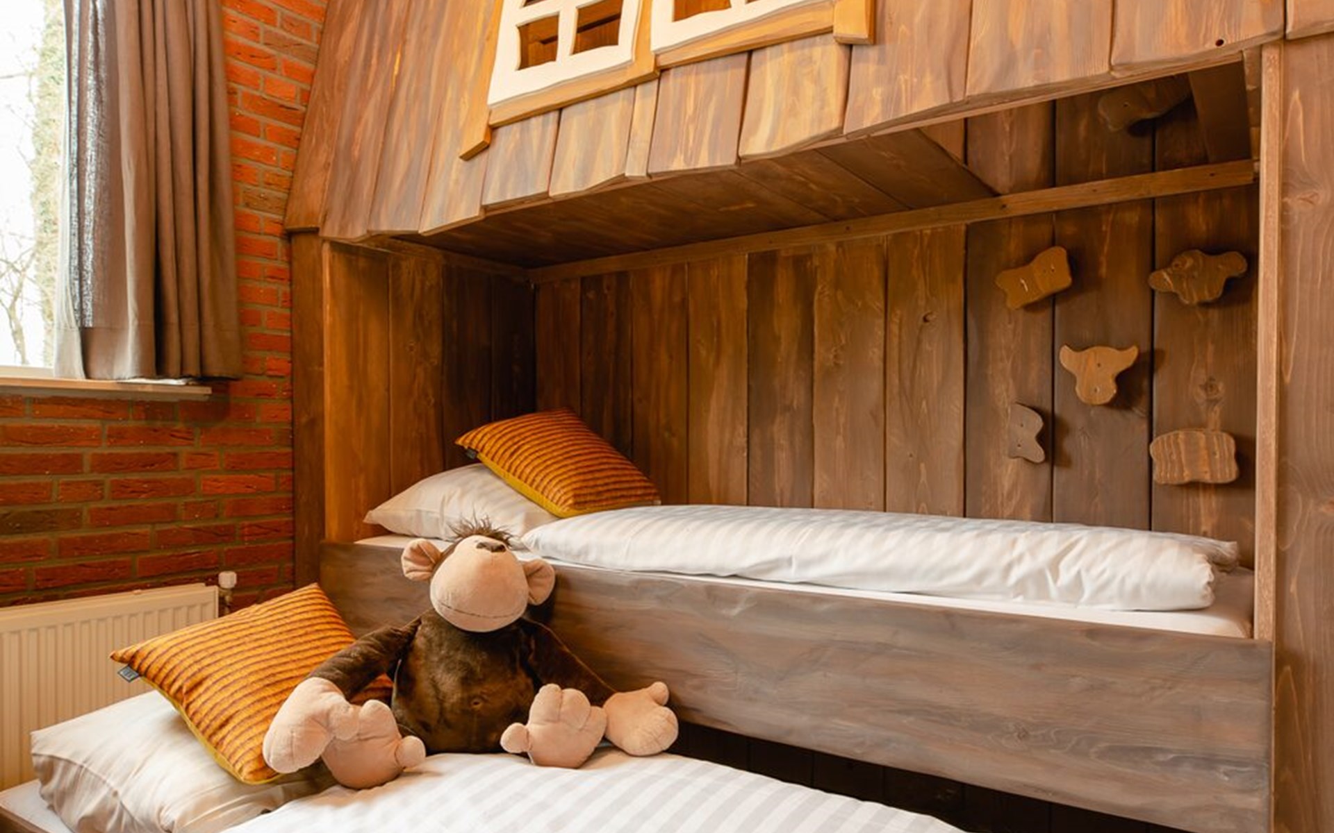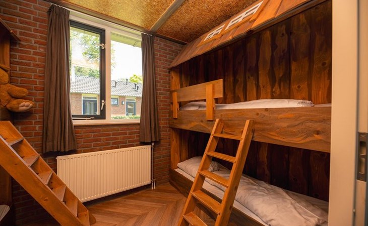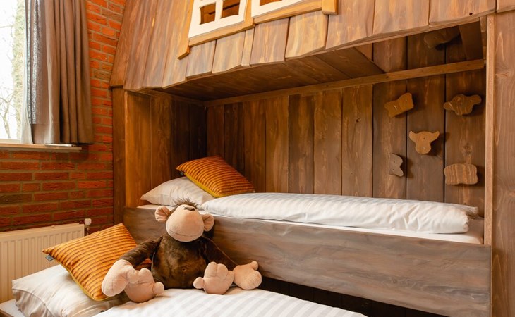 • Kinderzimmer mit zwei Baumhaus-Etagenbetten (Hinweis: weicht von den Fotos ab, es sind normale Etagenbetten, keine Ausziehbetten)