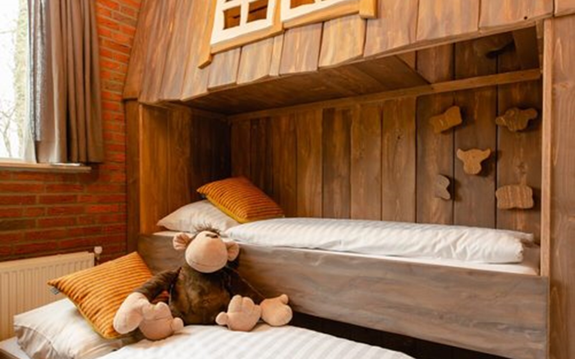 🌳 Das Baumhauszimmer: zwei robuste Etagenbetten (kein Ausziehbett, aber richtig gemütlich!).