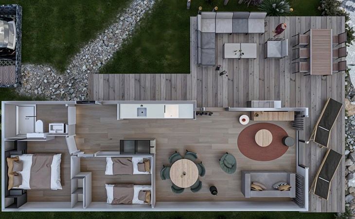 (Einige Unterkünfte dieses Typs sind mit zusätzlichen luxuriösen Ausstattungen für noch mehr Komfort ausgestattet. Wählen Sie Ihre Präferenz während des Buchungsvorgangs (Schritt 1: zusätzliche Ausstattungen).