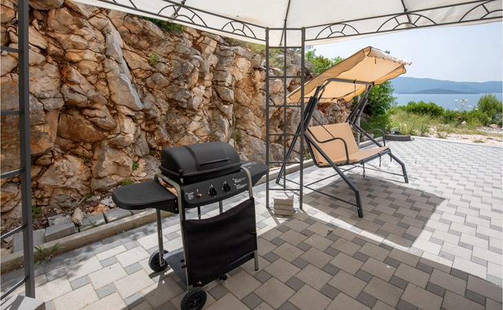 Hier ist die Rede von einem geräumigen einfach gehaltenen Apartment mit Meerblick und zwei Terrassenmöglichkeiten, um sich im Freien aufhalten zu können. Genießen Sie gemeinsame Stunden mit Ihrer Familie und machen es sich im Wohnraum mit stilvollen Dekorationen und hellem Ambiente gemütlich. Im Außenbereich finden Sie auch einen Grill und Gartenmöbel, somit können Sie an lauen Sommerabenden entspannt etwas Köstliches brutzeln lassen und den Abend bei einem Gläschen Wein ausklingen lassen.