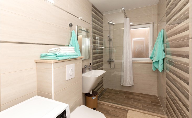 Dieses Domizil ist im kleinen Dorf Komarna in Süddalmatien gelegen, welches Ihnen Ruhe und behagliche Buchten bieten wird. Hier können Sie den Menschenmassen entfliehen und das weite tiefblaue Meer genießen, das nur etwa 200 m von Ihrer Unterkunft entfernt liegt. Entspannen Sie sich in diesem malerischen Naturszenario, mit Pinienwäldern, Flüssen, dem Meer, Kiesstrände und gigantische Felsenbuchten. Die Umgebung von Komarna hat auch einiges mehr zu bieten, darunter historische Denkmäler, u.a. das archäologische Museum Narona, die ornithologische Sammlung und Norsika Burg in Metkovic. Besuchen Sie auch die umliegenden Städte, wie Dubrovnik, dort können Sie durch die alten Gassen spazierengehen und Sehenswürdigkeiten wie die Stadtmauer, den Stadthafen und die Kathedrale besuchen.