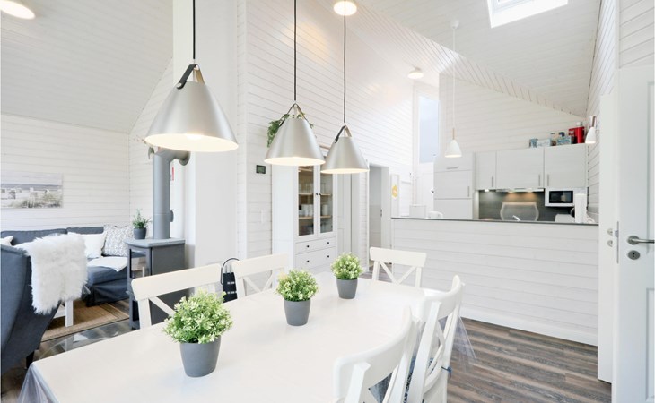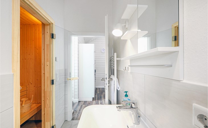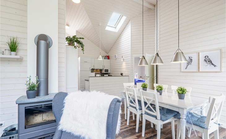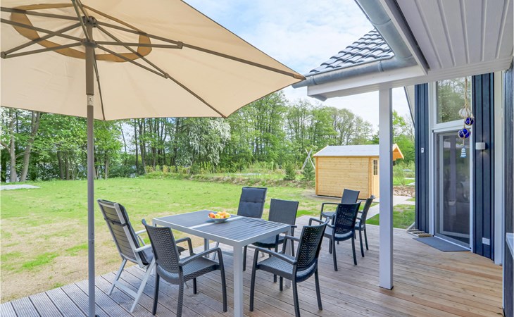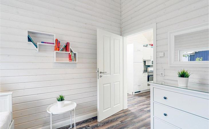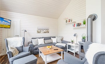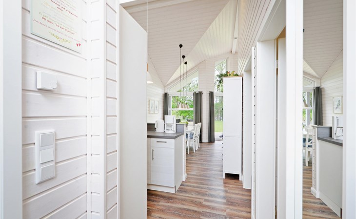 Das moderne Holzhaus „Seezauber“ überzeugt durch den skandinavischen Stil und bietet ausreichend Platz für 6 Erwachsene und ein Kleinkind. Aufgrund der firsthoch offenen Decke genießen Sie hier ein angenehmes Raumgefühl und lichtdurchflutete Zimmer.