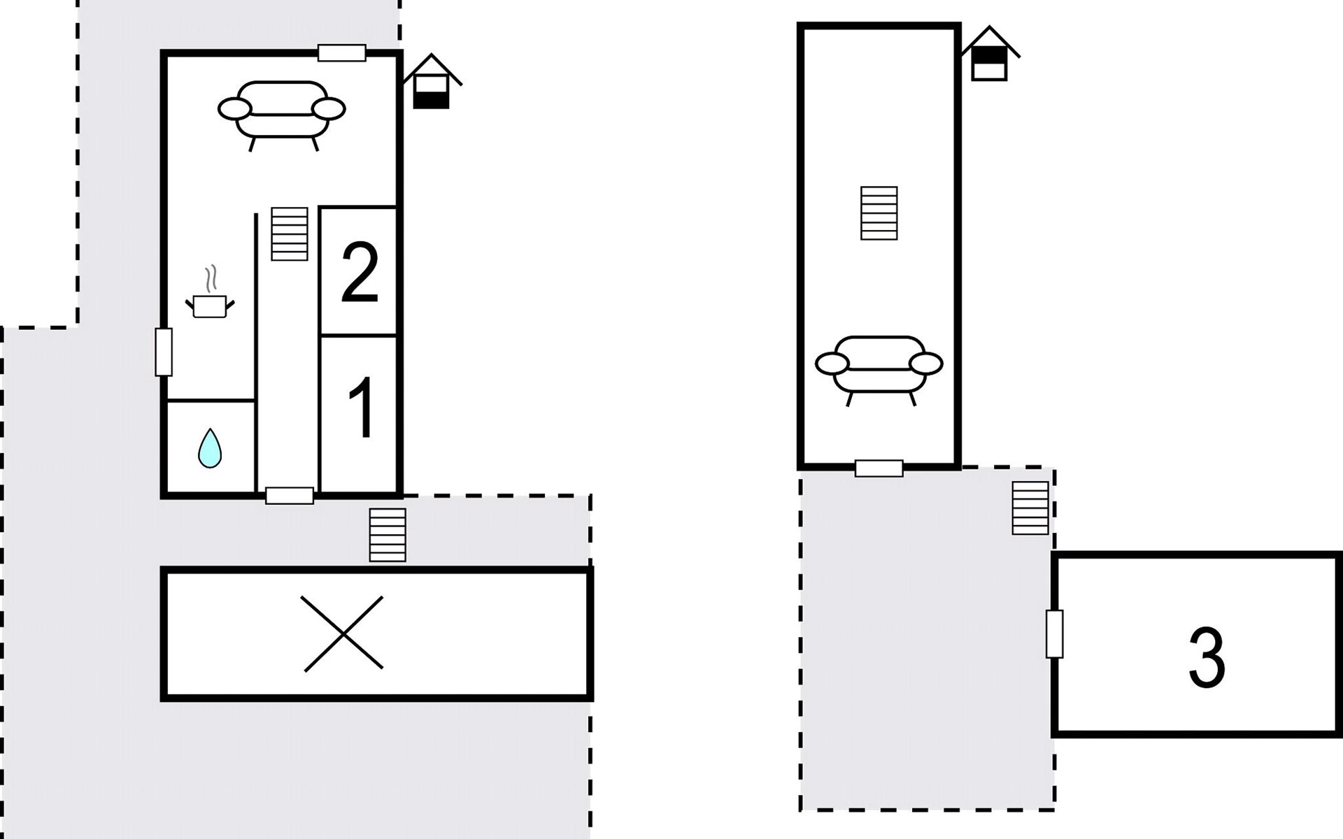 Das Ferienhaus ist geräumig und besitzt zwei Ebenen. Vom Obergeschoss aus blicken Sie auf das Wasser. Das große, mit Rasen und Sträuchern bewachsene Grundstück, ist eingezäunt. Ideal für einen Urlaub mit Kindern. Von der Terrasse besteht Sicht auf die Bucht.