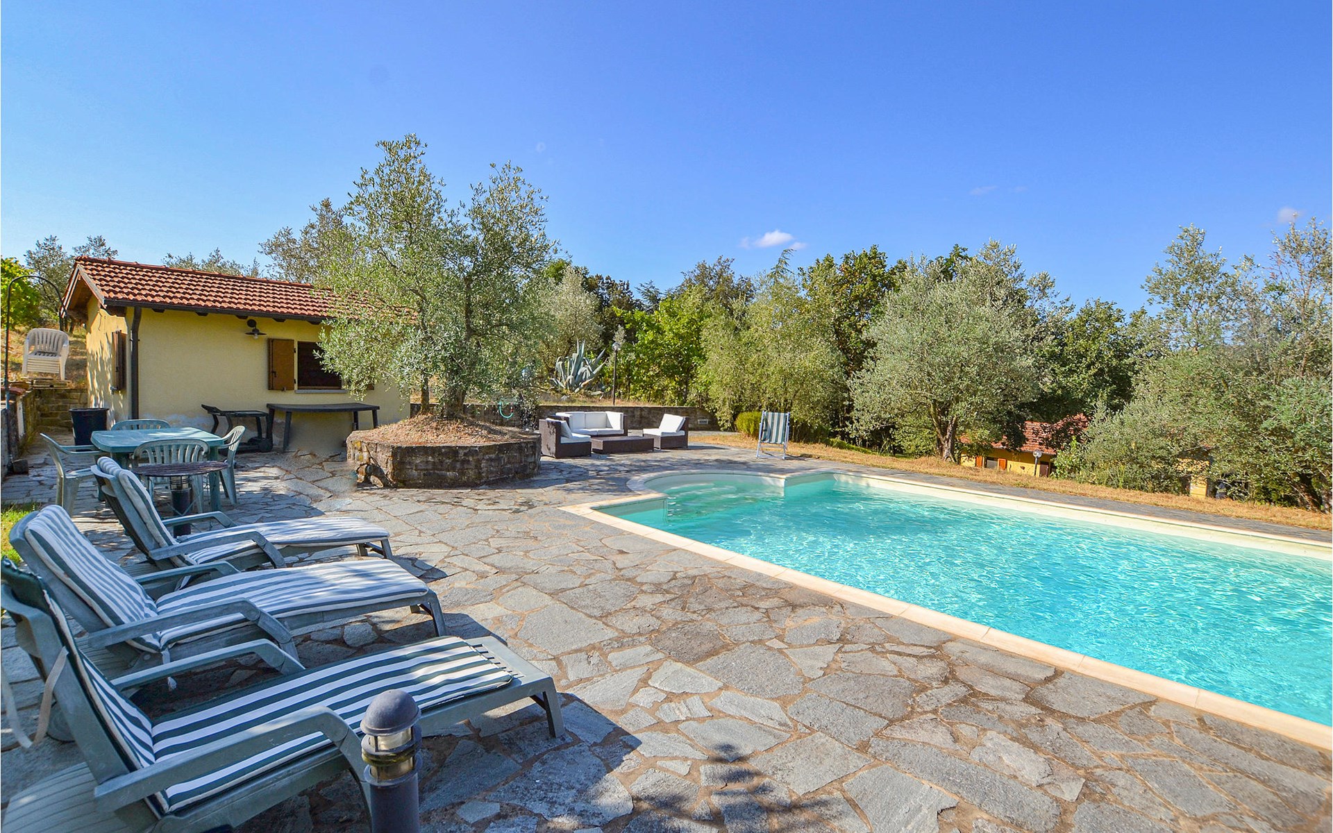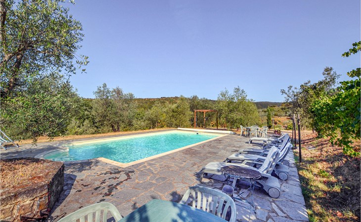 Dieses charmante Ferienhaus heißt mit seinen drei Schlafzimmern, zwei Bädern, dem Esszimmer und dem Wohnraum bis zu fünf Gäste herzlich willkommen. Der schöne große Garten lädt zum Entspannen ein. An Ihrem privaten Pool können Sie den ganzen Tag über das wundervolle Wetter der Toskana genießen. Auf Ihrer Terrasse können Sie morgens frühstücken oder den Tag bei einem Glas Wein ausklingen lassen.