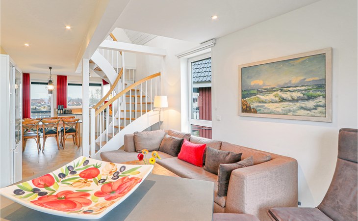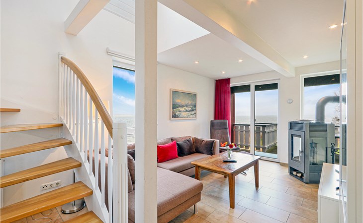 Das Maisonette-Appartement „Kapitänsdeck“ überzeugt mit einem wunderschönen Panoramablick auf die Müritz, von gleich zwei Balkonen aus. Aufgrund der zwei weiteren Balkone genießen Sie die Sonne von morgens bis abends. Falls das Wetter einmal nicht mitspielen sollte, können Sie es sich im lichtdurchfluteten Wohnzimmer vor dem Kaminofen gemütlich machen.