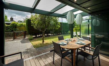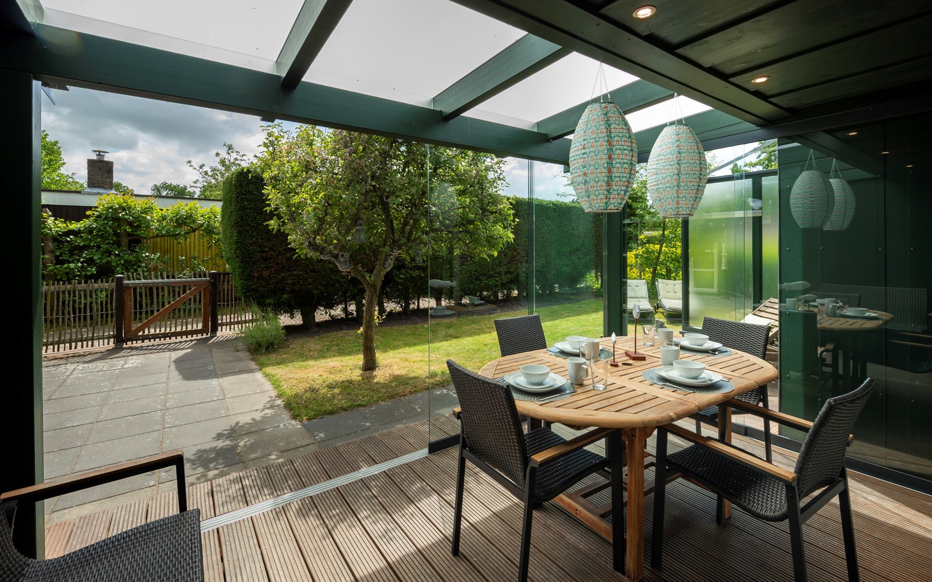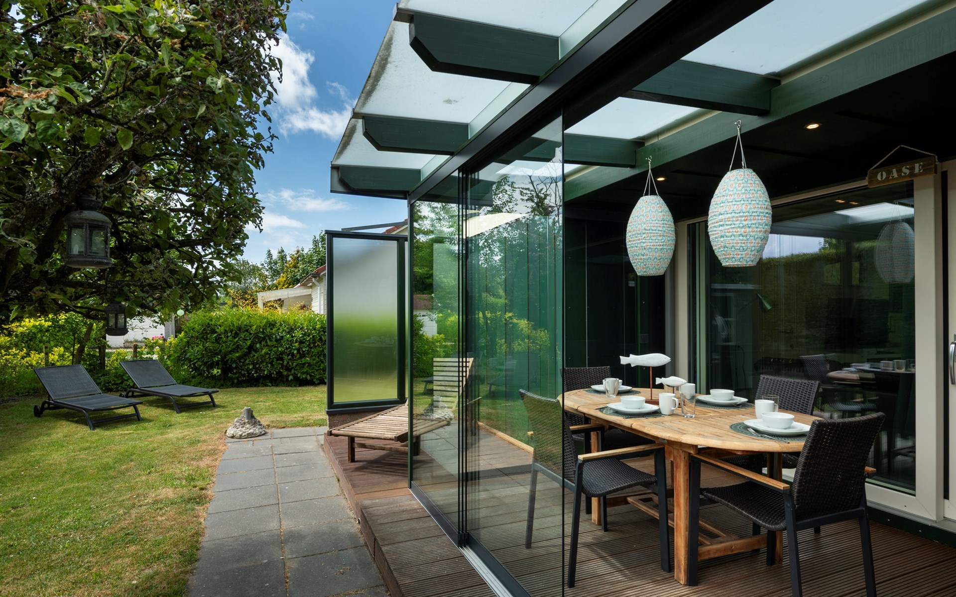 Ein gemütliches Ferienhaus, das für 5 geeignet ist. Die offenen Küche ist von allen Annehmlichkeiten versehen. Im Sommer können Sie herrlich die Türe zum Garten hin beim Kochen offen stehen lassen und bereiten ein zauberhaftes Dinner vor, welches Sie dann unter der teils überdeckten Terrasse genießen. Da die Überdachung Anfang 2025 mit Glasschiebetüren ausgestattet wird, können Sie auch im Frühling und Herbst „draußen“ sitzen. Besonders bei Sonnenschein wird dieser Wintergarten schnell zu einem angenehmen Aufenthaltsort. Was gibt es besseres als zusammen im Garten mit der ganzen Familie zu essen und entspannen?