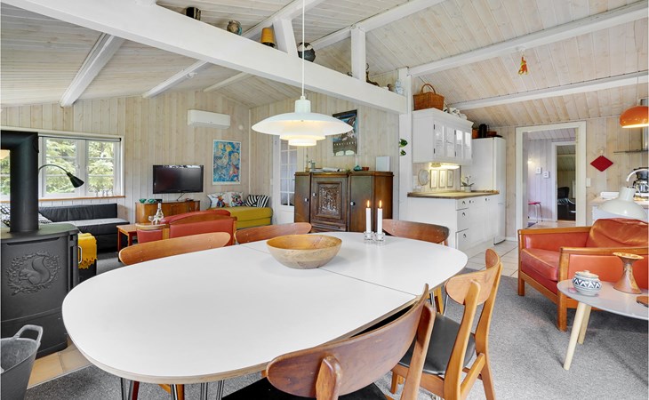 Charmantes, gemütliches Ferienhaus, in einem Stil zum Entspannen und Genießen. Mehrere guter Terrassen, eine ist überdacht. Hier sitzen Sie abends im Freien und sehen wie langsam der Tag zur Nacht wird. Auf der überdachten Terrasse ist ein guter Filetierplatz angebracht. Rund um das Grundstück wachsen Bäume, die für Windschatten und Privatsphäre sorgen. Das Gebiet hier ist kinderfreundlich, im Sommer können Sie auch den gemeinsamen Pool im Freien benutzen. Auf dem Fluss Gudenå können Sie Kanutouren unternehmen, der nicht weit entfernt fließt. Die Natur lädt auch darüber hinaus zu Wanderungen ein, auch schöne Radwege gibt es hier. Besuchen Sie auch die Städte Aarhus und Silkeborg.