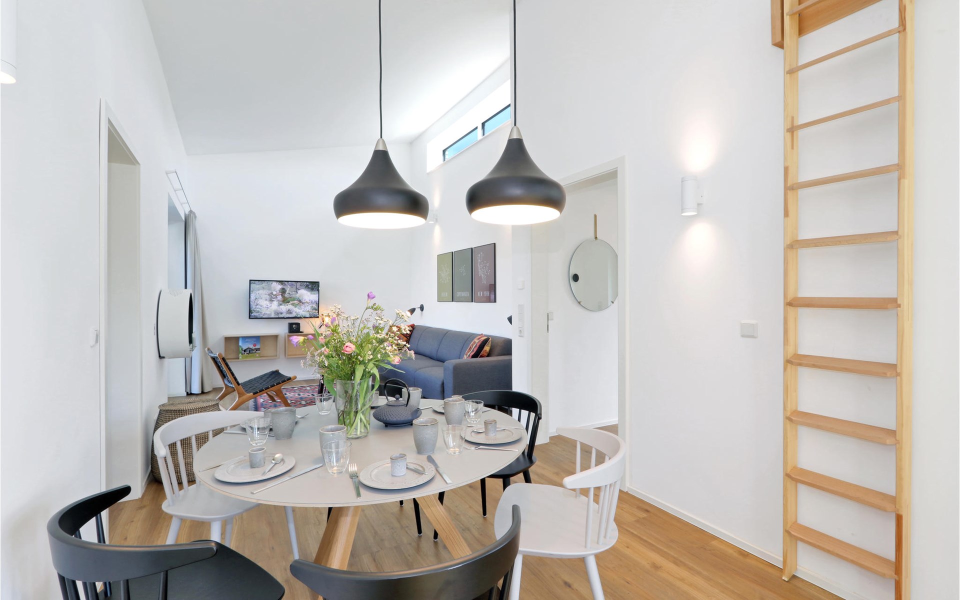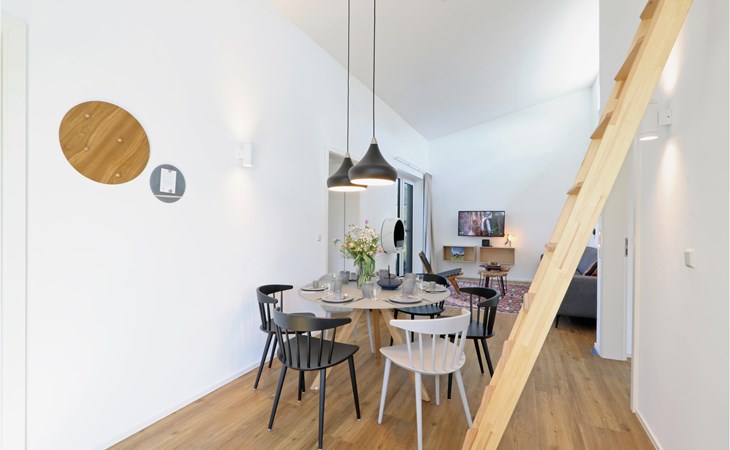 Willkommen in Ihrem Ferienhaus, das Ihnen als Familie mit Kindern oder als kleine Freundesgruppe ein gemütliches, wohnliches Ambiente mit Einrichtung im skandinavischen Design bietet. Zwei Terrassen zum Sitzen und Essen in der Sonne, der Bio-Kamin und die eigene Sauna lassen keine Wünsche offen. Die offene Küche lädt zum Kochen und Verweilen ein. Auf der Galerie befindet sich ein offenes Schlafzimmer.