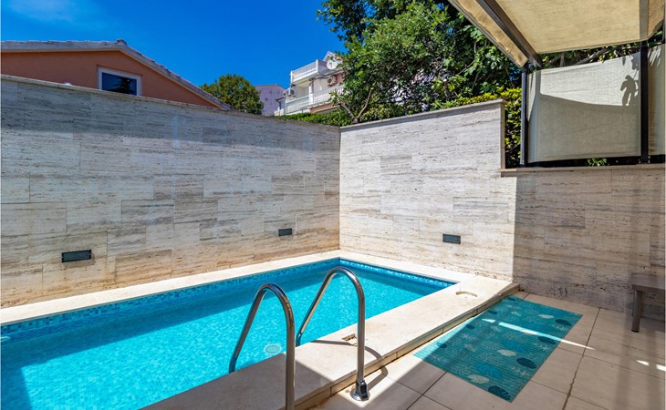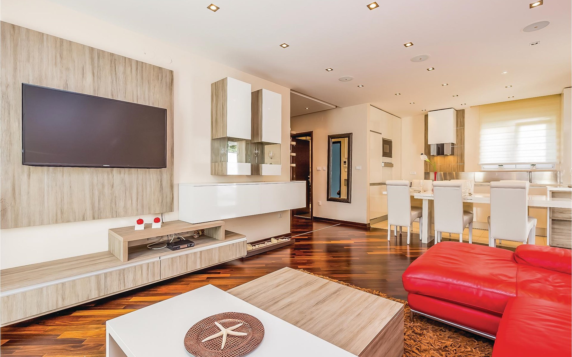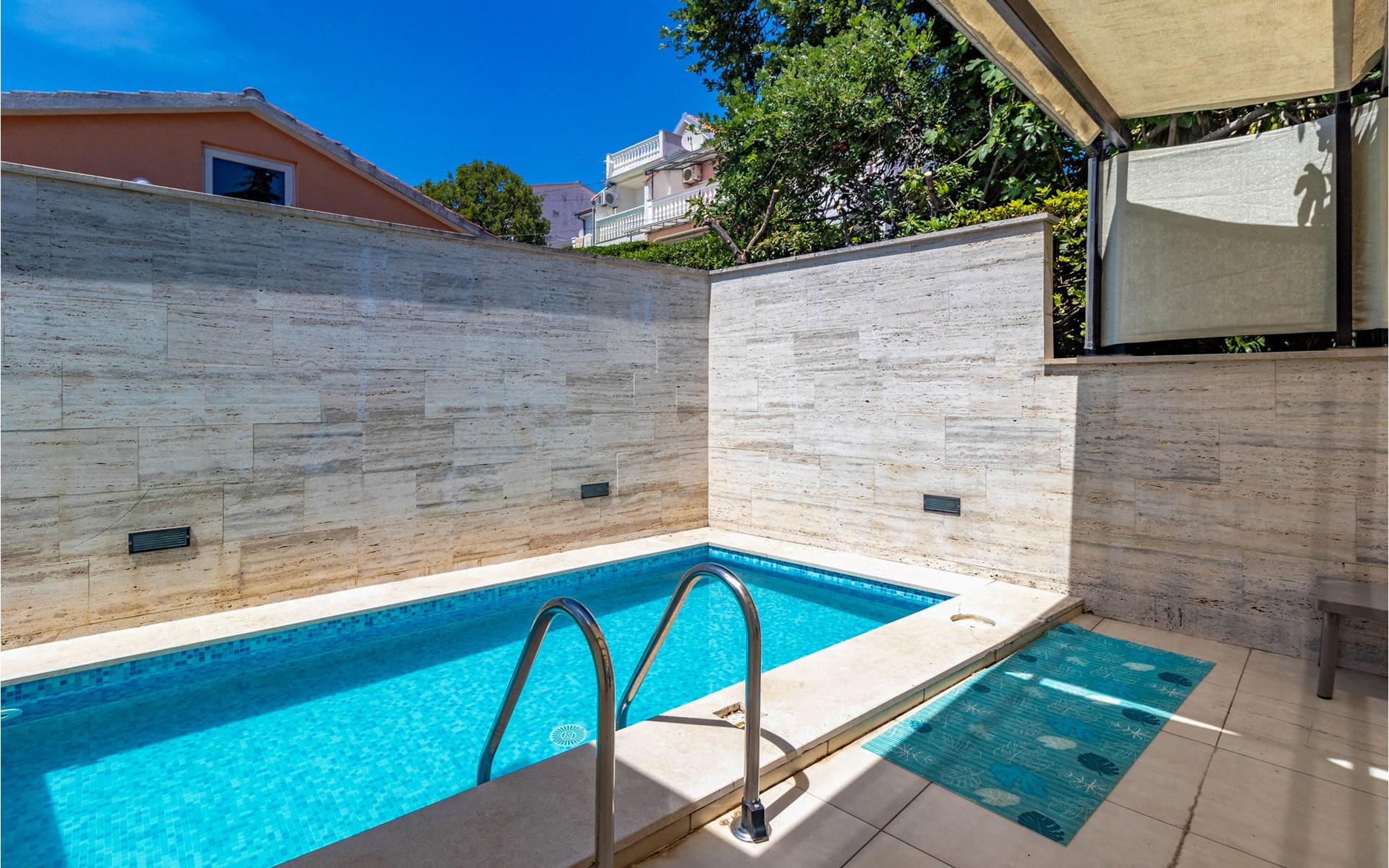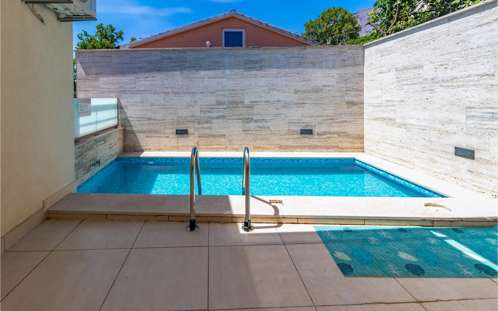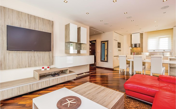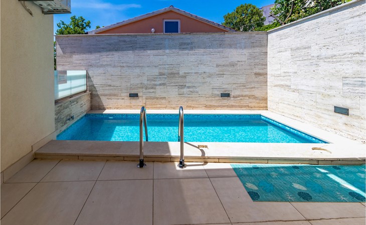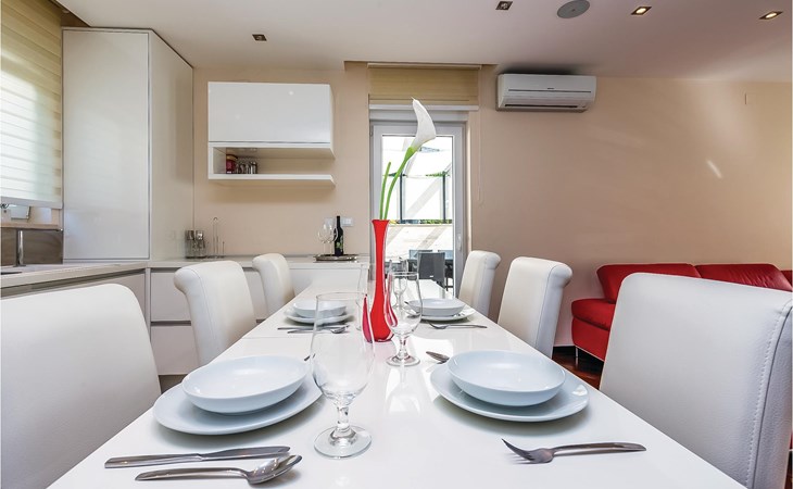 Nahe dem Meer, von welchem Sie ca. 20 Stufen trennen, befindet sich diese komfortable und modern eingerichtete Ferienwohnung. Sie hat einen eigenen Pool weit weg von der Hektik der Stadt, die man andererseits in nur 20 Minuten zu Fuß die Küste entlang erreicht. Das Zentrum von Crikvenica hat vieles zu bieten. Im gleichen Haus befinden sich auch noch die Wohnungen CKC586 und CKC589. In der Nähe ist die sogenannte "Promenade der Gesundheit", die sich vom Zentrum von Crikvenica bis zur Bucht Slana im Ort Selce erstreckt. Entspannende Klänge des Meeres werden Sie dort begleiten und Sie werden an kleinen Buchten, grünen Parks und Gärten des malerischen Küstenortes vorbei kommen. Während Ihren Aufenthaltes können Sie Sehenswürdigkeiten wie das Aquarium, den Adrenalin Park und/oder das Museum von Crikvenica besichtigen. Begeben Sie sich auf einen Tagesausflug zu den benachbarten Inseln oder zum Hinterland von Crikvenica, wo Sie das Vinodoltal erkunden können. Dort finden Sie kleine Tavernen mit Spezialitäten vom Wild, Gerichte aus Wildpflanzen oder Weine aus der Region.