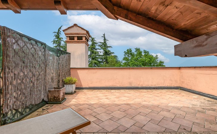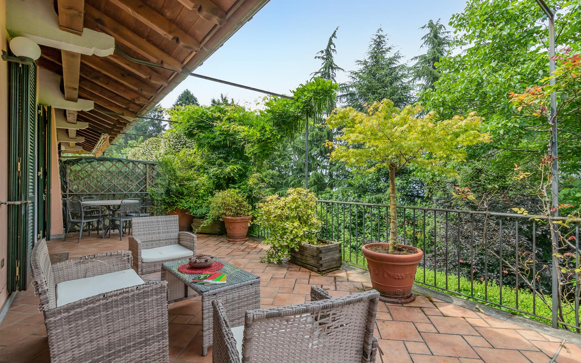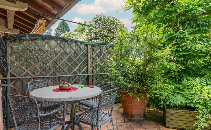 Draußen können Sie entspannten Stunden in der Sonne und an der frischen Luft mit Blick ins Grüne auf der schönen offenen Terrasse des Hauses verbringen.