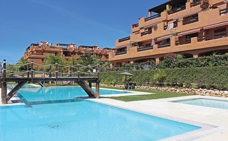 Umwerfende Ferienwohnung auf der 1. Etage mit Terrasse und Gemeinschaftspool, Snack-Bar, Sauna und gut ausgestattetem Fitnessraum. Der Strand Playa del Angel ist wunderschön gelegen, direkt am Strand von Estepona und nur wenige Minuten zu Fuß vom Zentrum entfernt. Estepona ist mit seinen zahlreichen Restaurants, Bars und Geschäften ein fantastisches Urlaubsziel mit vielen Freizeit- und Wassersportmöglichkeiten. Mit Bootsverleih und Angeltouren. Eine ganz besondere Art, die Gewässer vor der Küste kennenzulernen stellen die regelmäßigen Ausflüge zur Delphinbeobachtung dar. Ca. 25 km von Marbella und 1 Std. Autofahrt von Malaga entfernt.