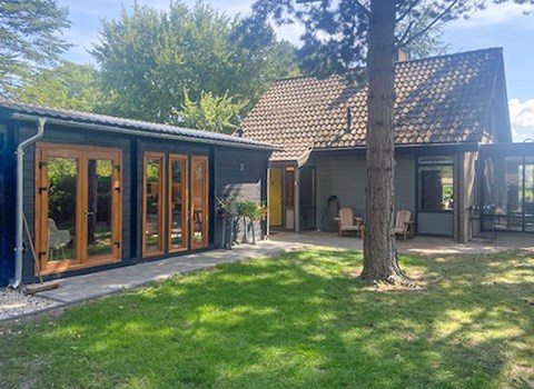 Schönes Ferienhaus mit privatem Garten in einem Ferienhausdorf.